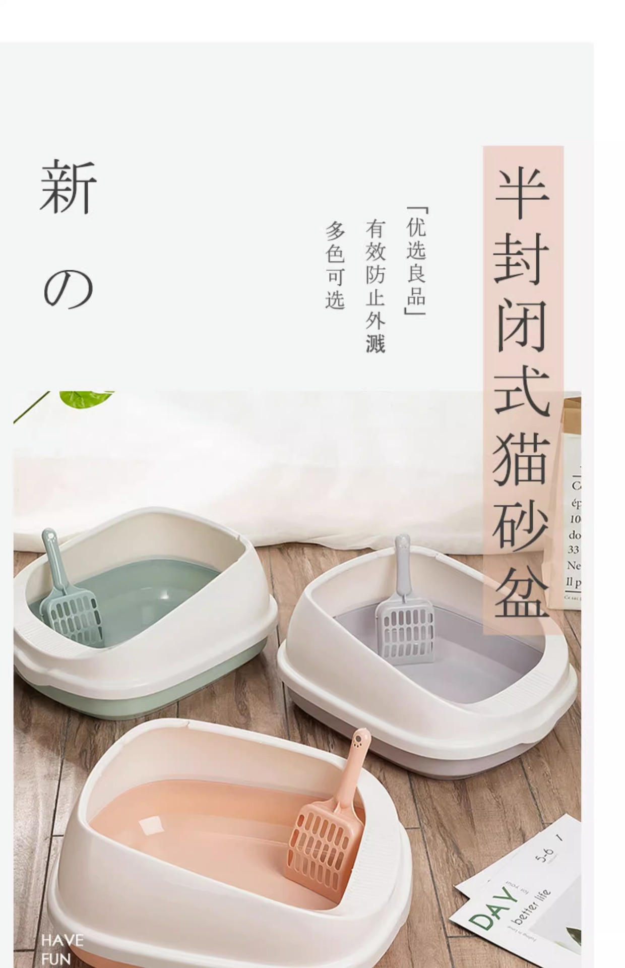 반밀폐형 하이사이드 고양이 화장실, 개방형 고양이 화장실, 대형, 중형 및 소형, 물 튀김 방지 애완동물 고양이 화장실, 고양이 용품스토어 가기