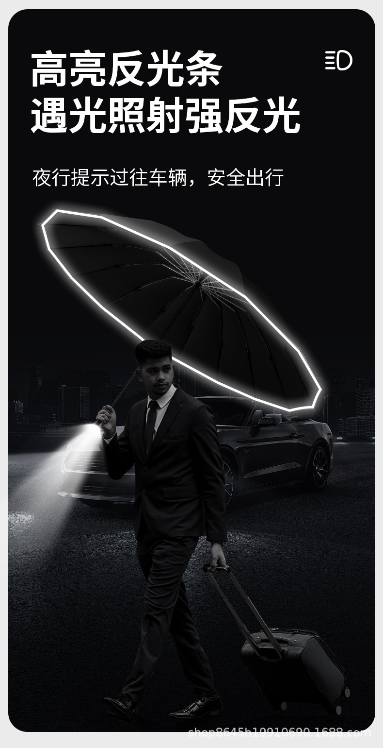• [블랙 - 우산커버 155cm - LED조명 - 역방향 개폐] 특대형 우산커버