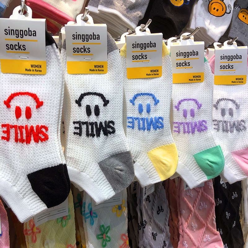한국 수입 singgoba 양말 도파민 웃는 얼굴 편지 소녀 양말 봄과 여름 새로운 짧은 튜브 색상 일치면 양말스토어 가기