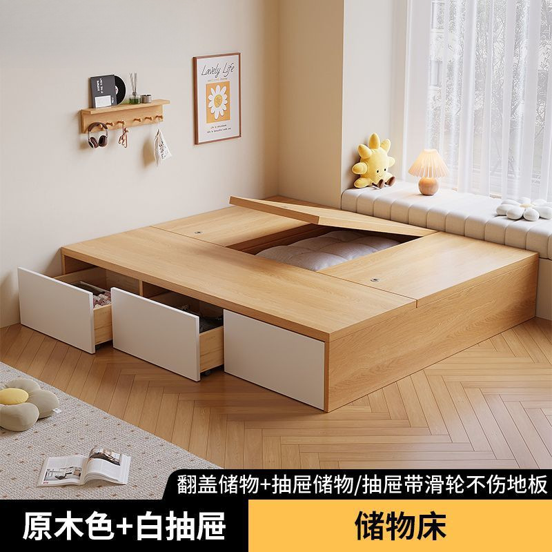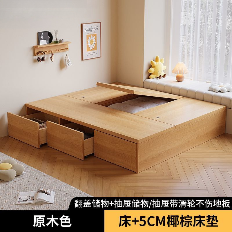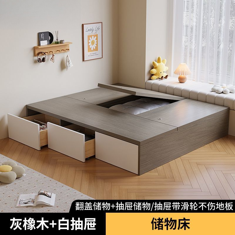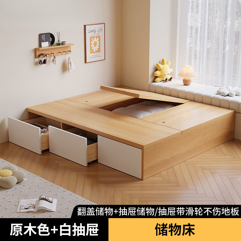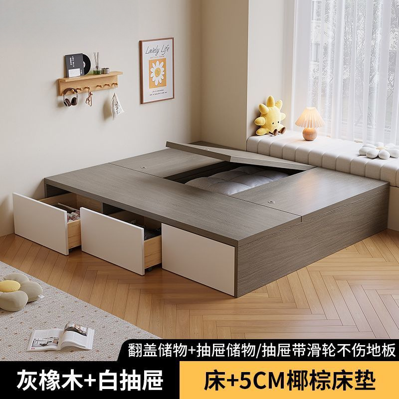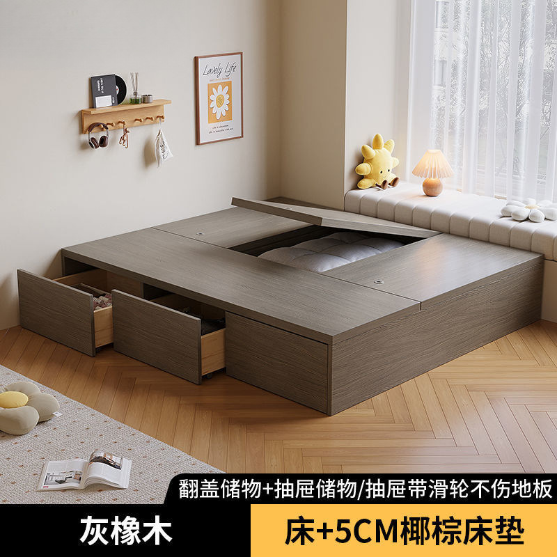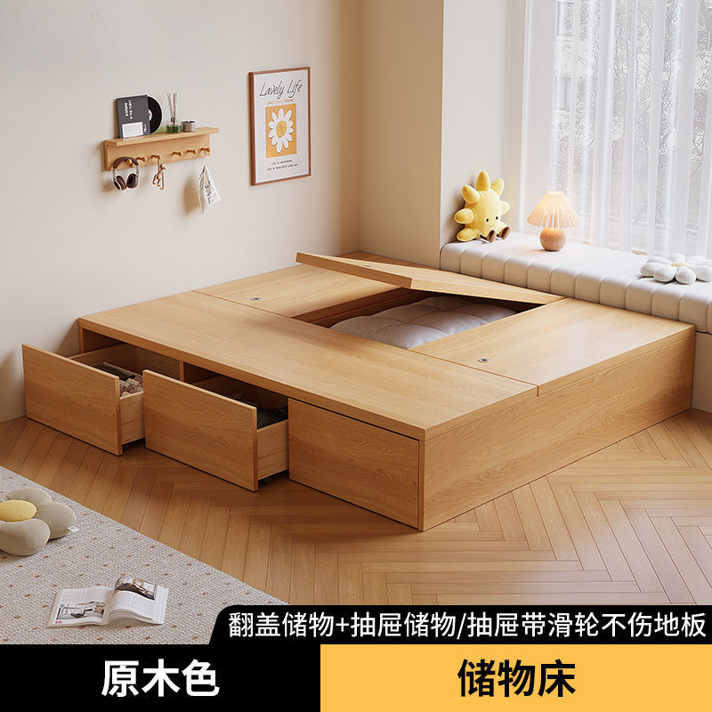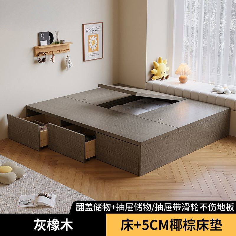 단단한 나무 침대 현대 간단한 더블 침대 비 침대 침대 저장 침대 바닥 다다미 싱글 침대 캐비닛