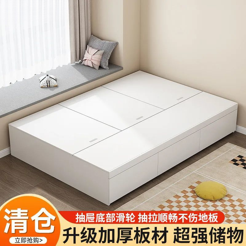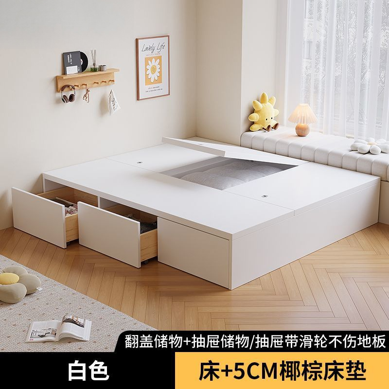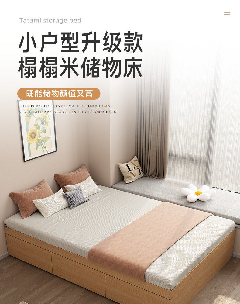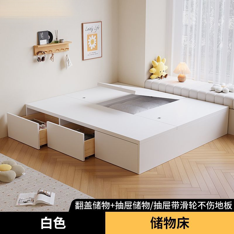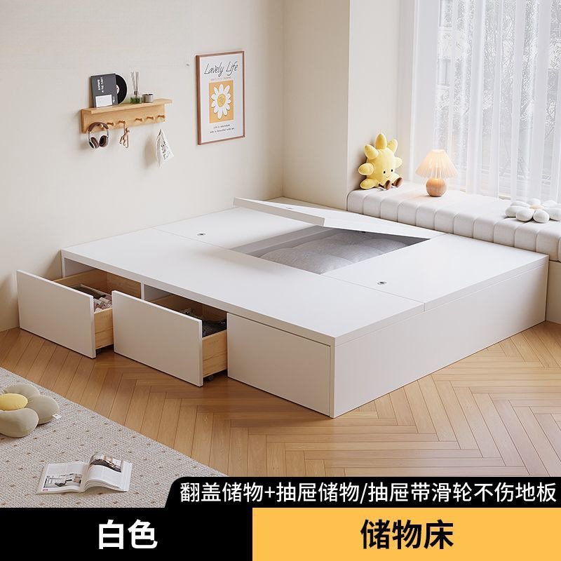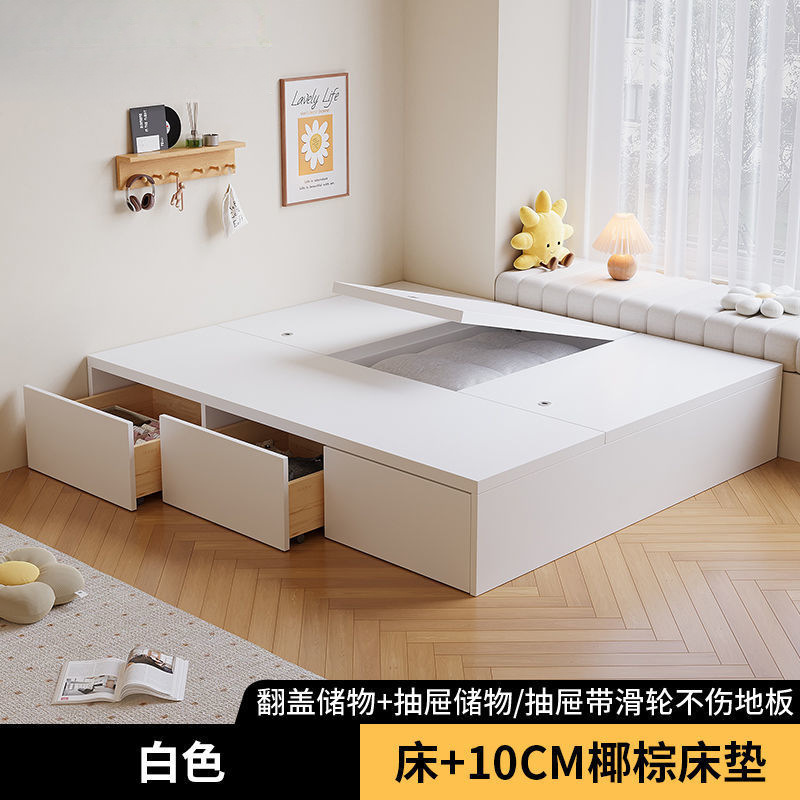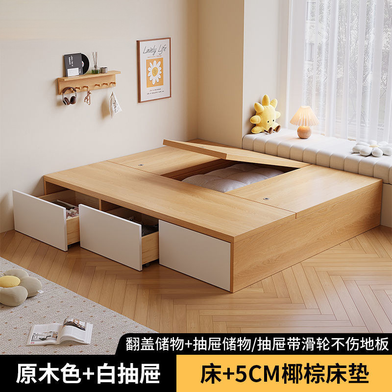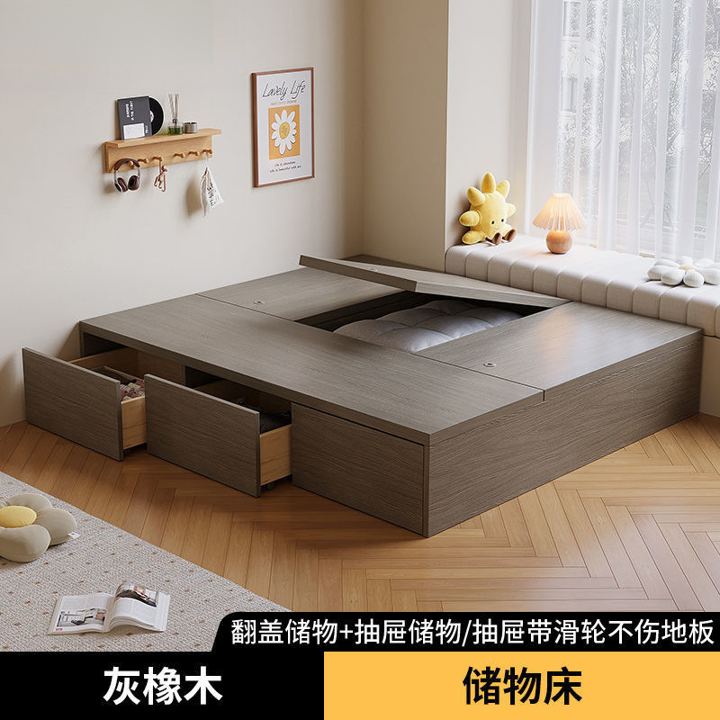 단단한 나무 침대 현대 간단한 더블 침대 비 침대 침대 저장 침대 바닥 다다미 싱글 침대 캐비닛