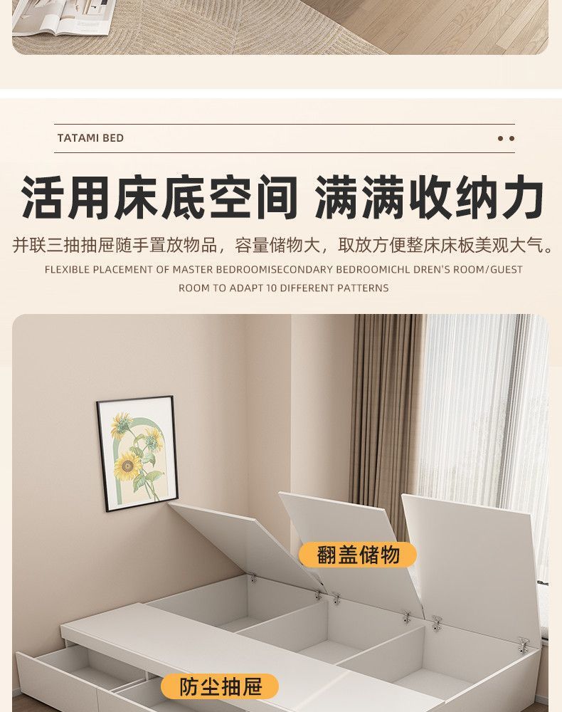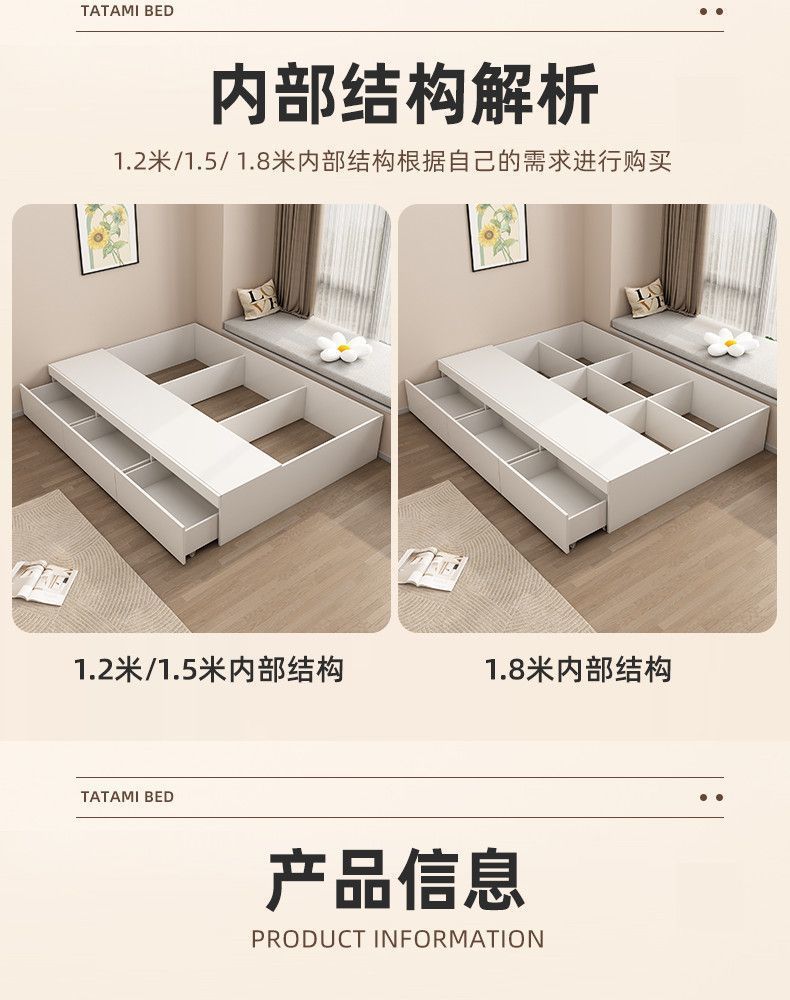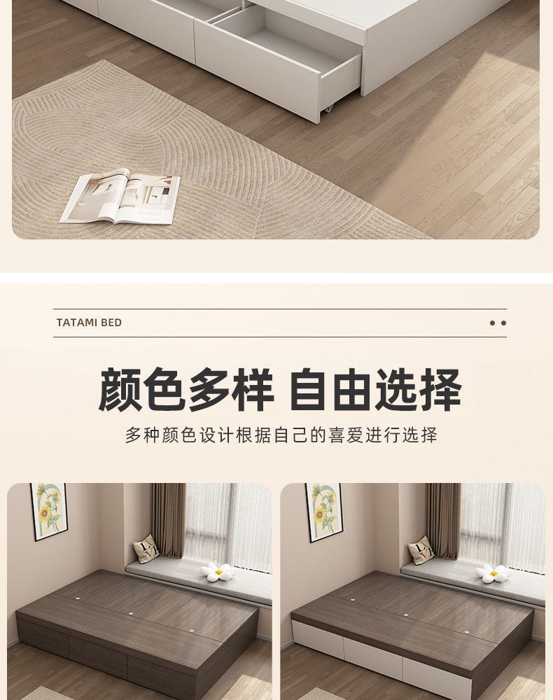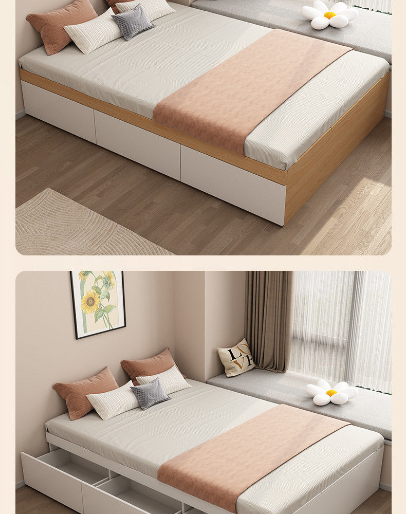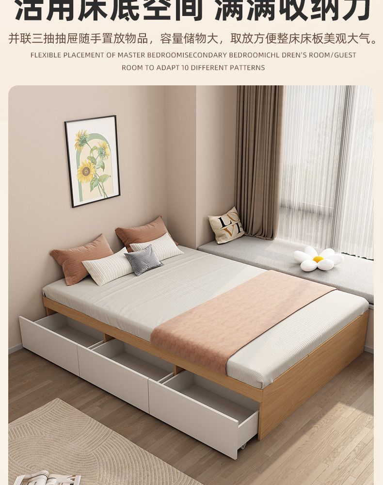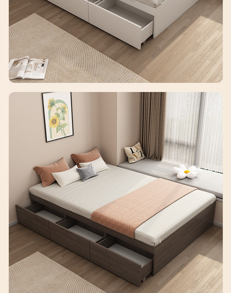 단단한 나무 침대 현대 간단한 더블 침대 비 침대 침대 저장 침대 바닥 다다미 싱글 침대 캐비닛