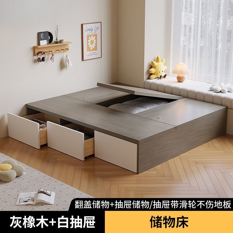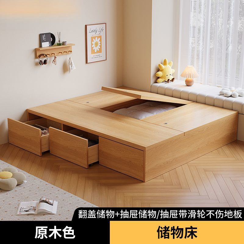 단단한 나무 침대 현대 간단한 더블 침대 비 침대 침대 저장 침대 바닥 다다미 싱글 침대 캐비닛스토어 가기