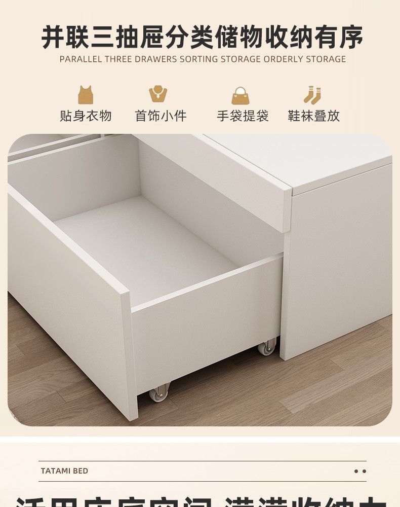 • 따뜻한 흰색 3단 서랍 수납침대 [위층 포함]