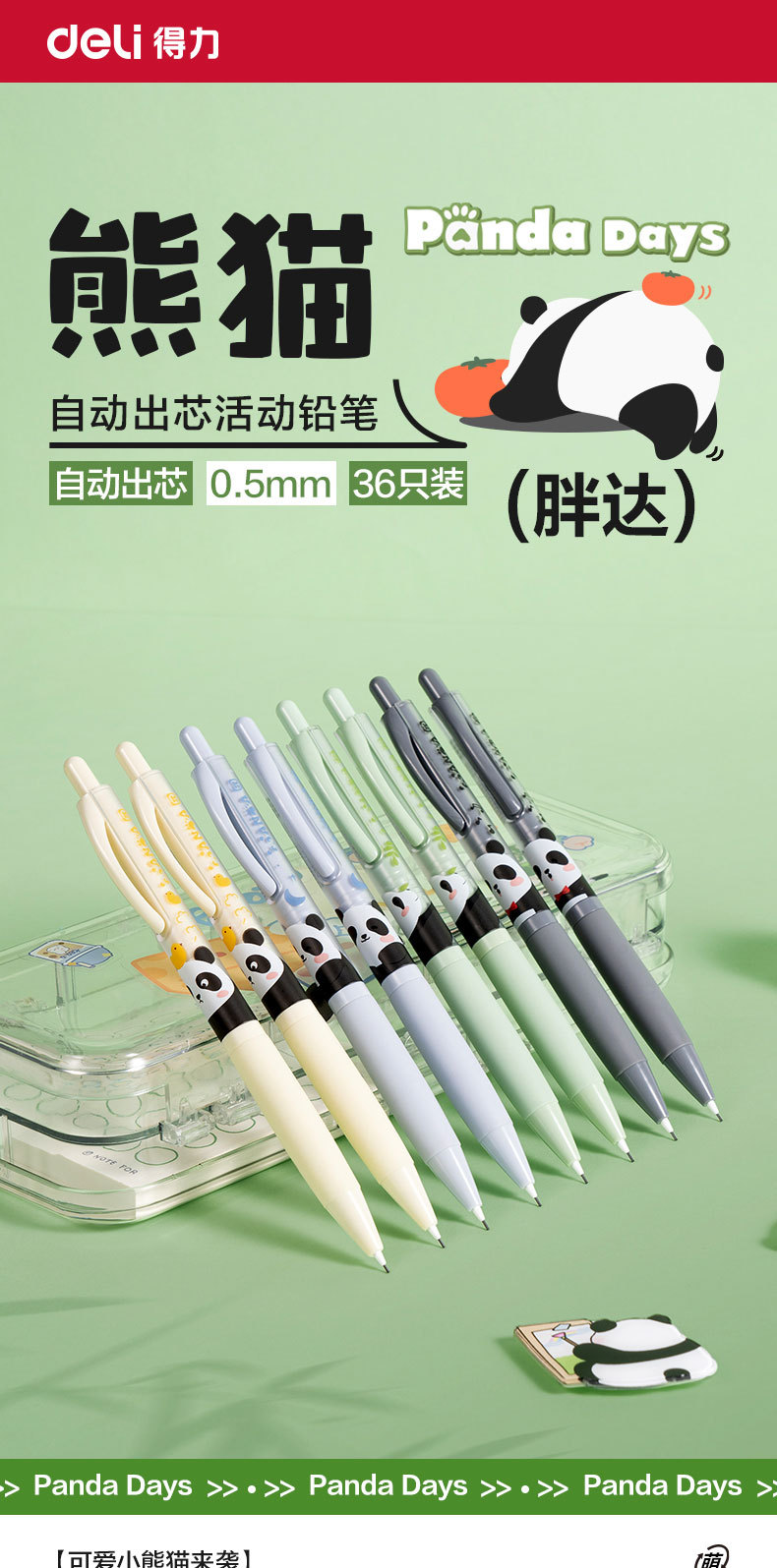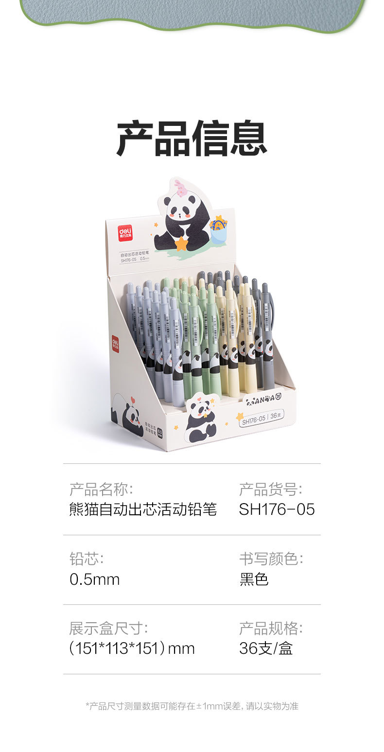 델리 샤프펜슬 크리에이티브 팬더 0.5 자동심 교체 가능, 깨지기 어려운 자동펜슬 초중학생용 0.7 연필스토어 가기