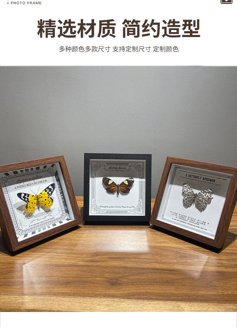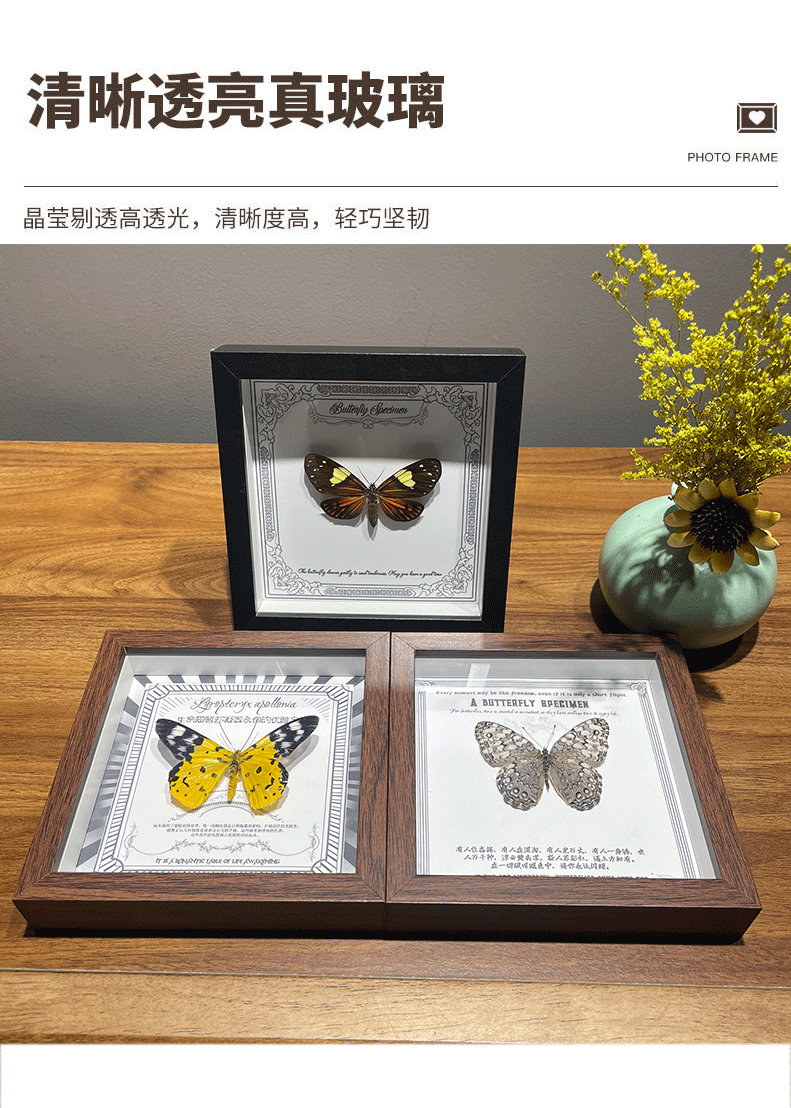 나무 중공 사진 프레임 테이블 diy 크리 에이 티브 나비 표본 사진 프레임 사각형 액자 실제 유리 작은 사진 프레임