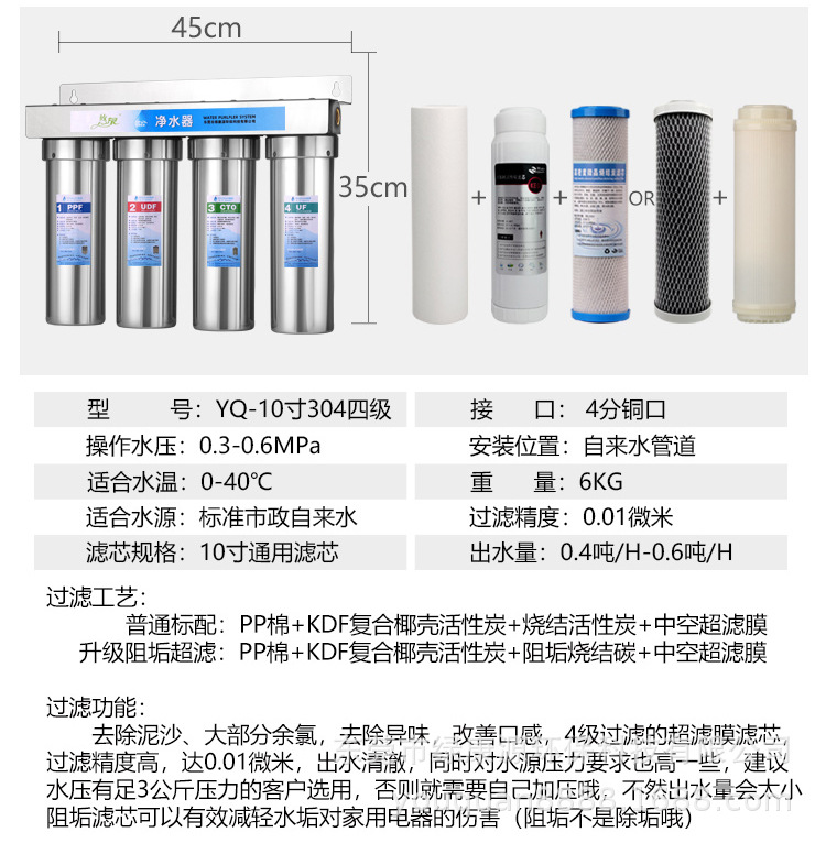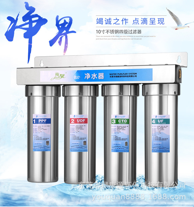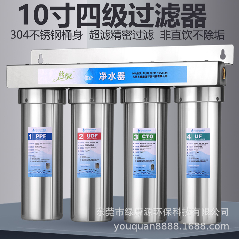 10 인치 304 스테인레스 스틸 필터 4 단계 전면 정수기 가정용 주방 욕실 대형 흐름 거친 여과 초여과스토어 가기