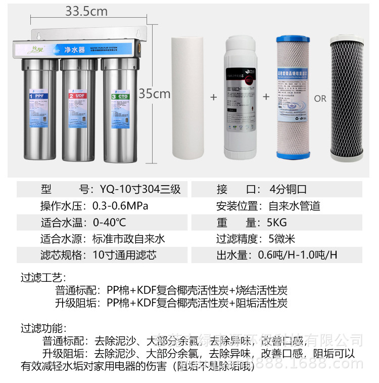 • 10inch 스테인레스 스틸 4점 구리 포트 3단 필터