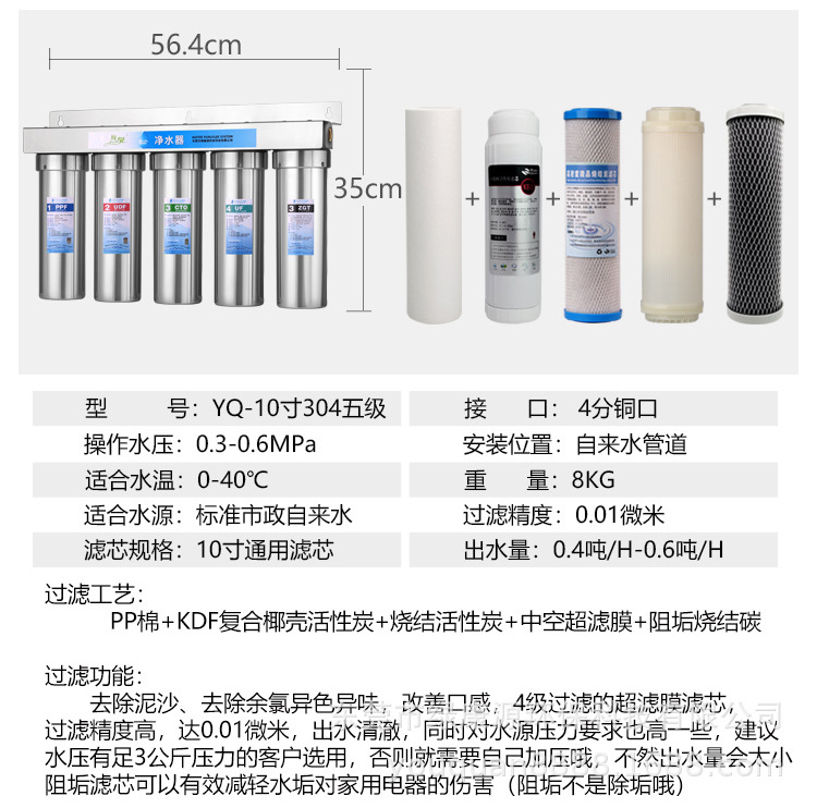 • 10inch 스테인레스 스틸 4점 구리 포트 5단 필터