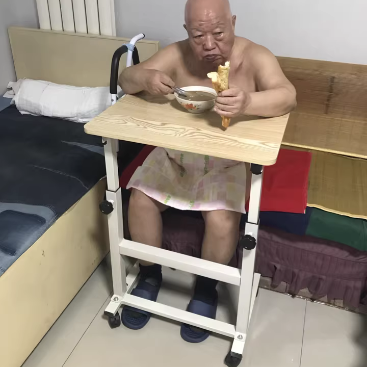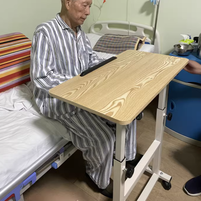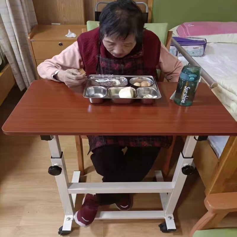환자 식탁, 병원 노인 식탁, 침대 위 이동식 리프팅 접이식 침대 옆 원목 테이블