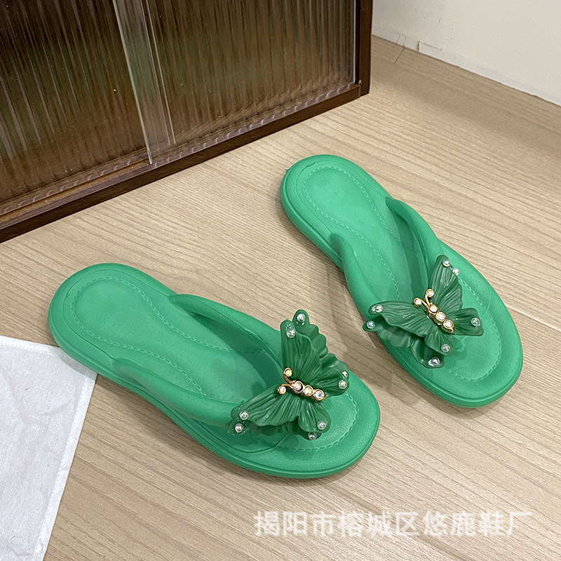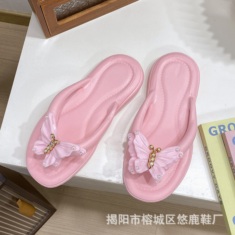 새로운 2025 도파민 한국어 버전 여름 해변 미끄럼 방지 요정 스타일 샌들 보우 여성 슬리퍼스토어 가기