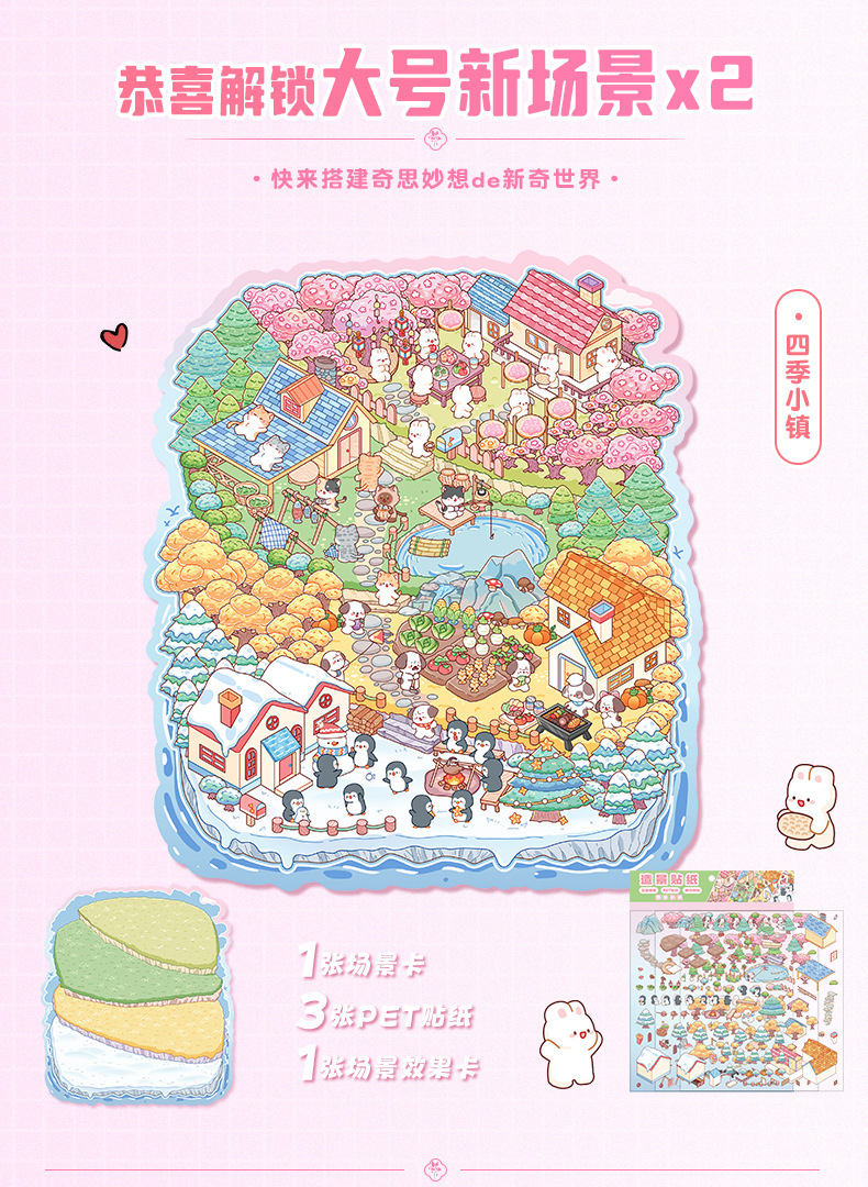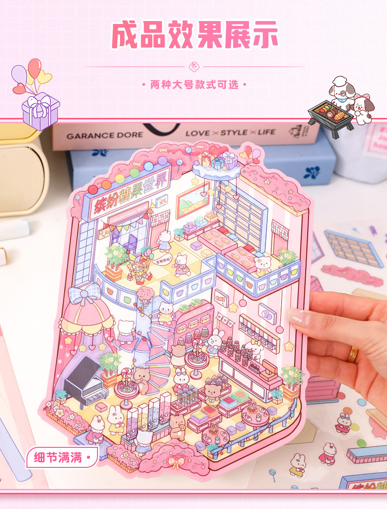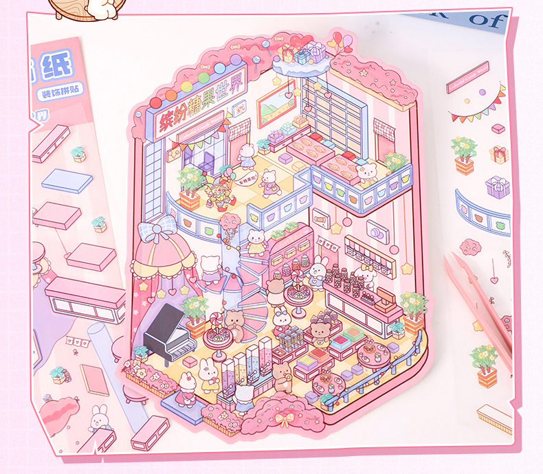 만화 32.0 조경 스티커 3D 3 차원 미니어처 장면 스티커 창조적 인 스태킹 손 계정 장식 스티커 diy 스티커스토어 가기