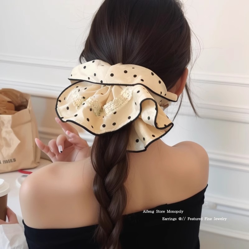 레이스 웨이브 도트 대형 Intestine 헤어 링 여성 하이 엔드 센스 프린세스 헤드 로프 오버 리저드 고무 텐더 헤어 넥타이 헤어 로프스토어 가기