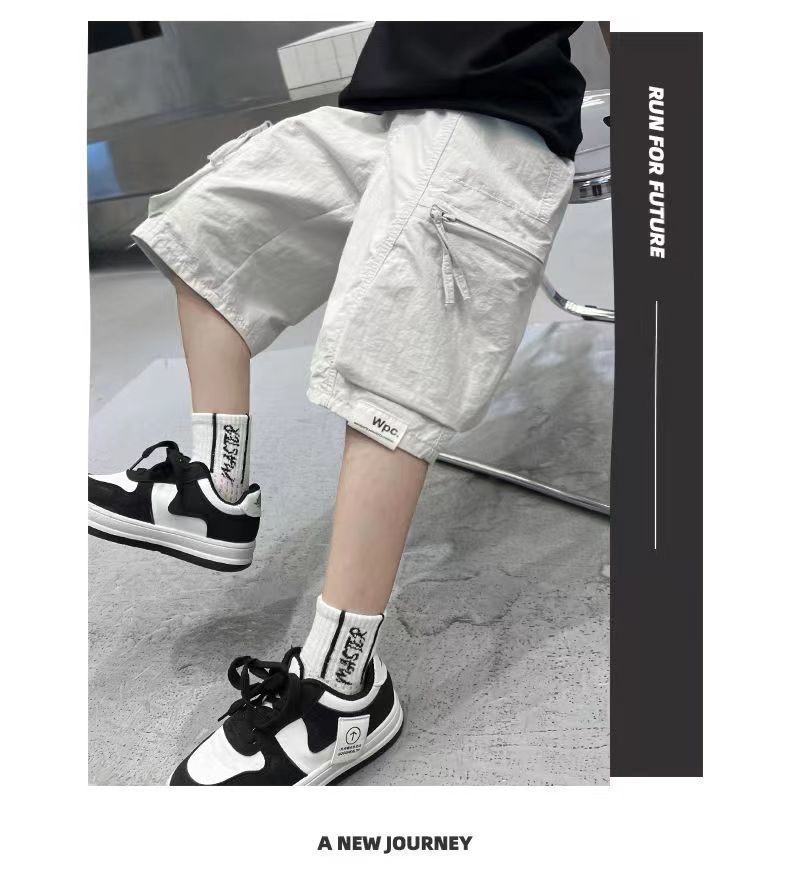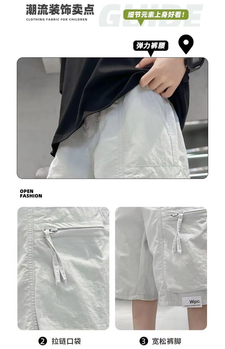 남학생 작업복 5 점 바지 2025 새로운 어린이 여름 얇은 여름 착용 소년 거리 튀김 외복 반바지