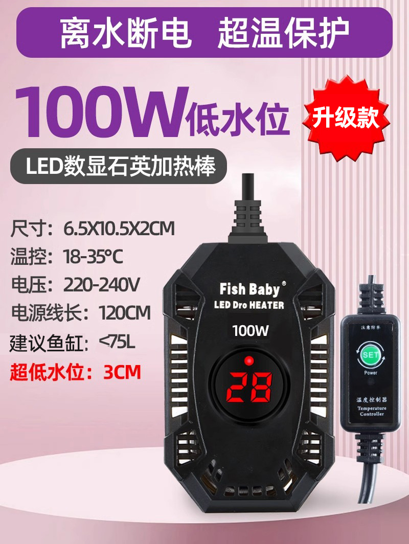 • 100W 초저수위 3CM으로 업그레이드 [더 많은 절전/물이 없을 때 정전/과열 보호]