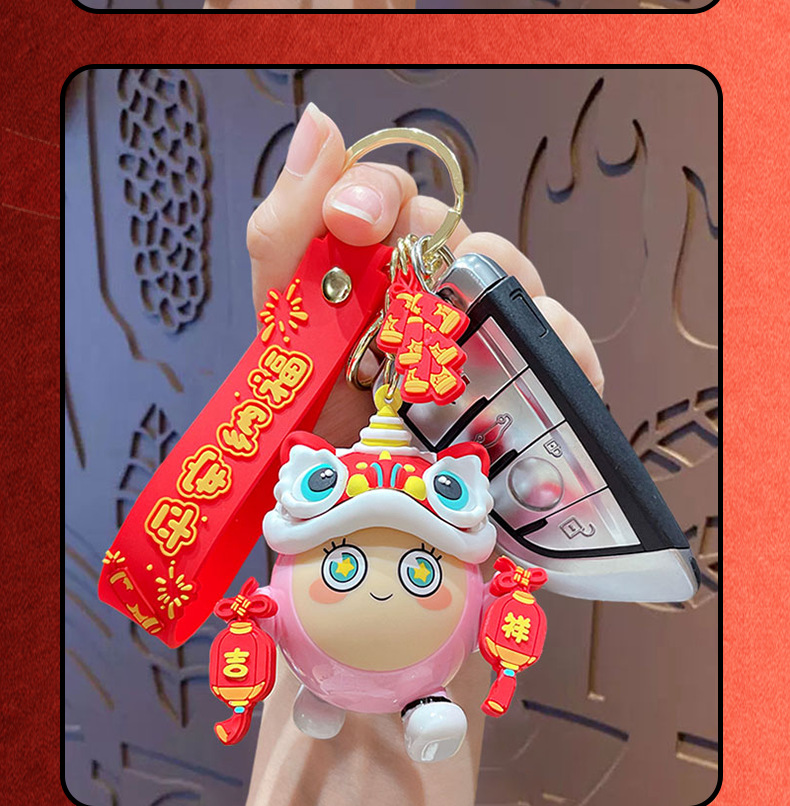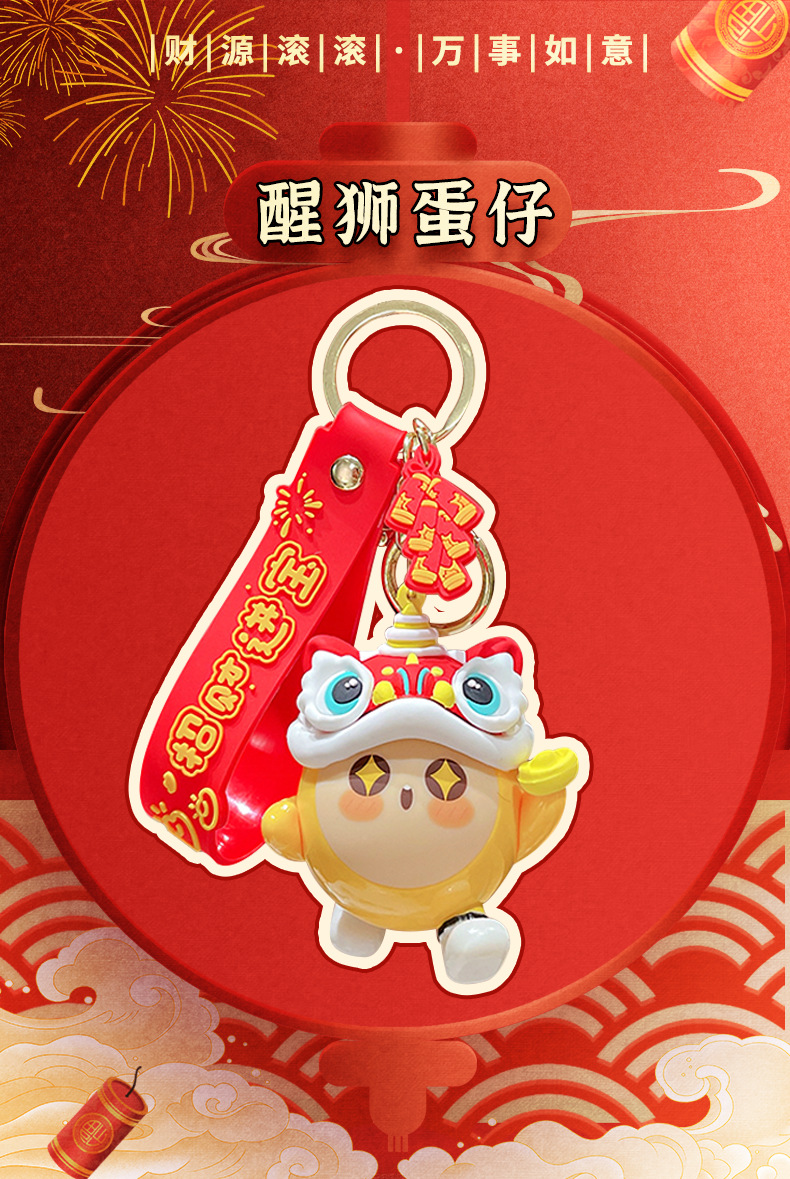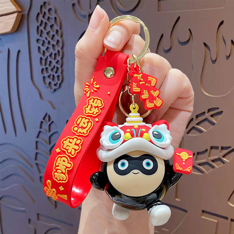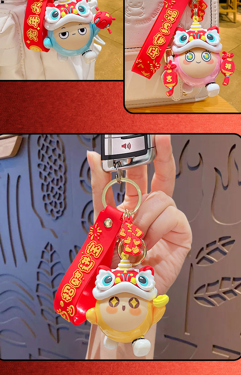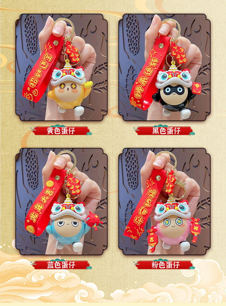 정품 만화 댄스 사자 달걀 파티 키 체인 펜던트 커플 가방 펜던트 자동차 키 체인 선물 도매