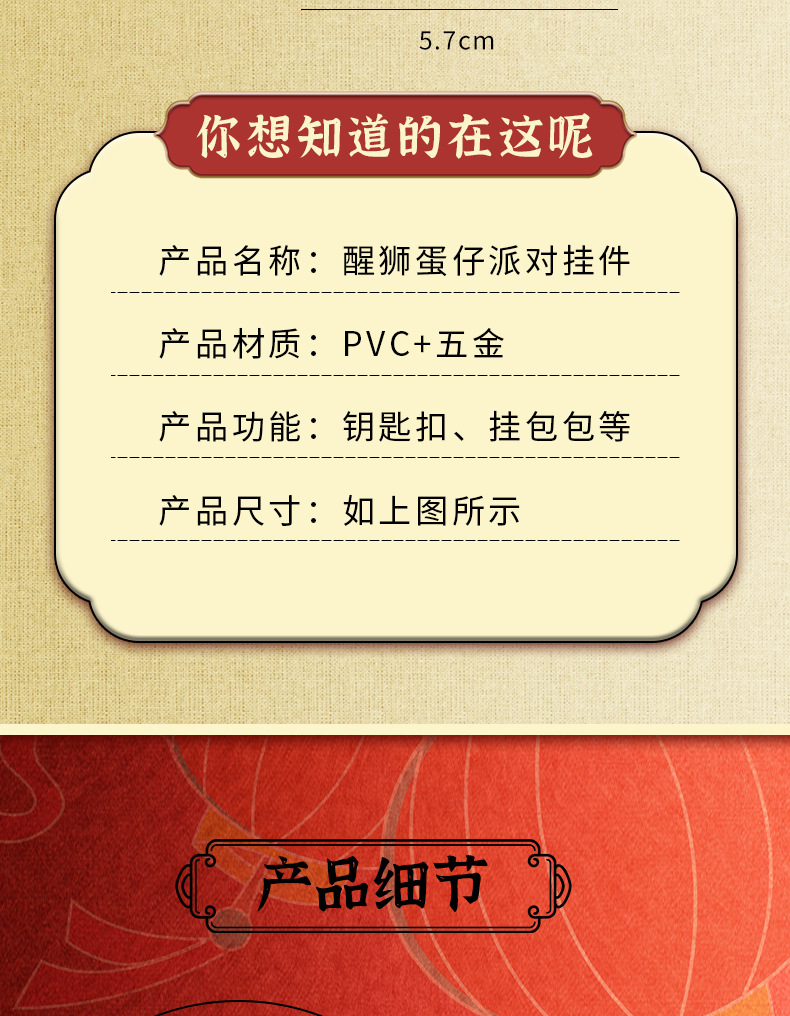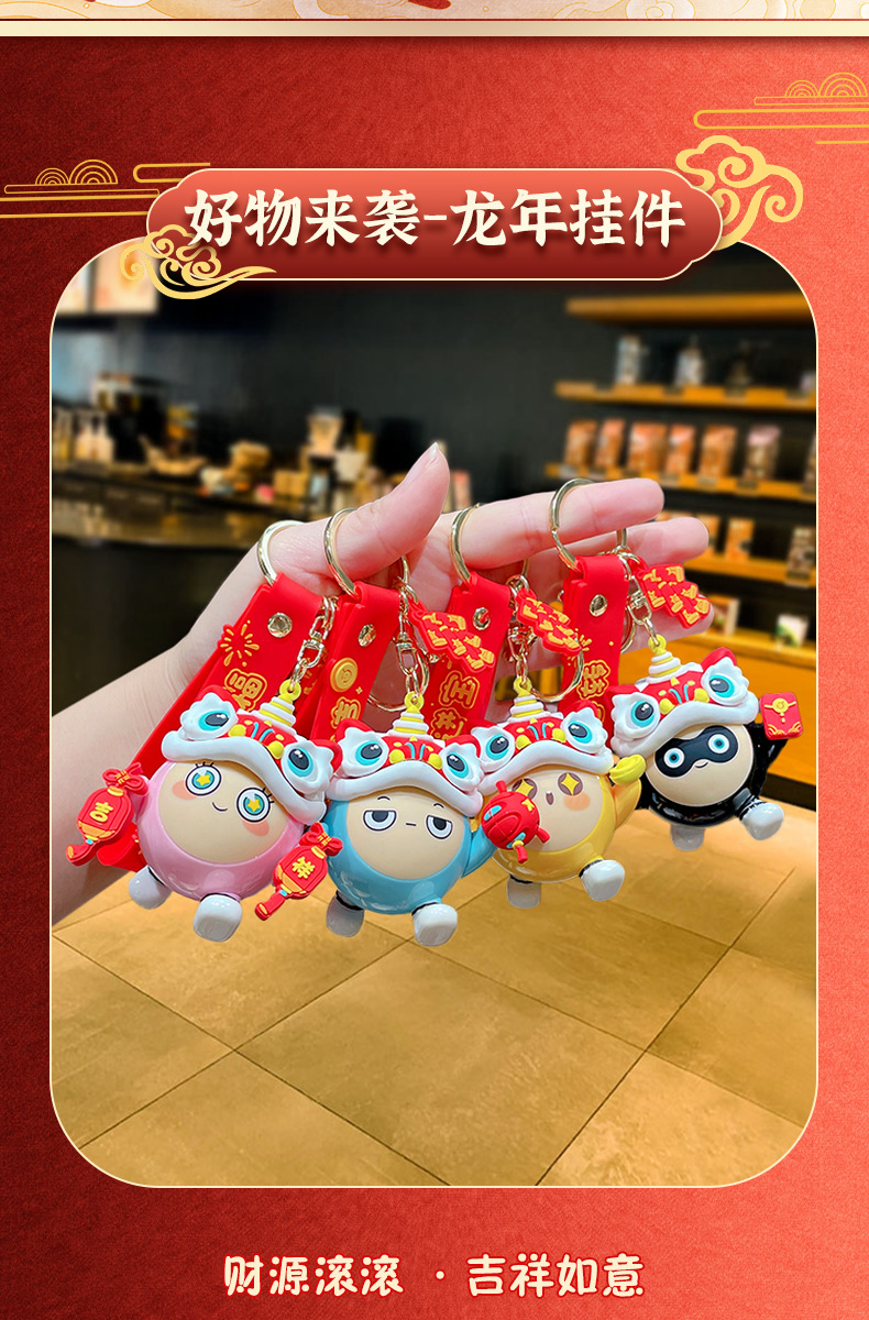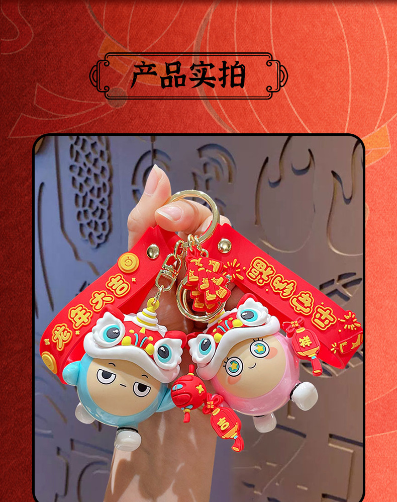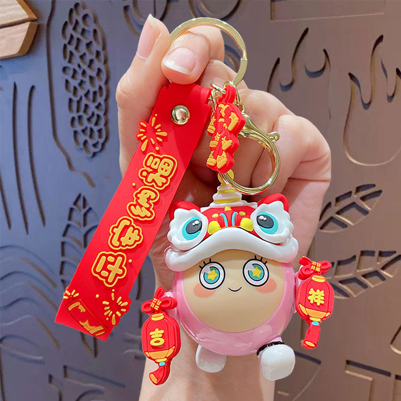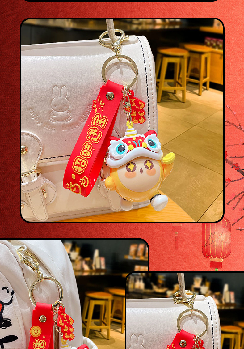 정품 만화 댄스 사자 달걀 파티 키 체인 펜던트 커플 가방 펜던트 자동차 키 체인 선물 도매