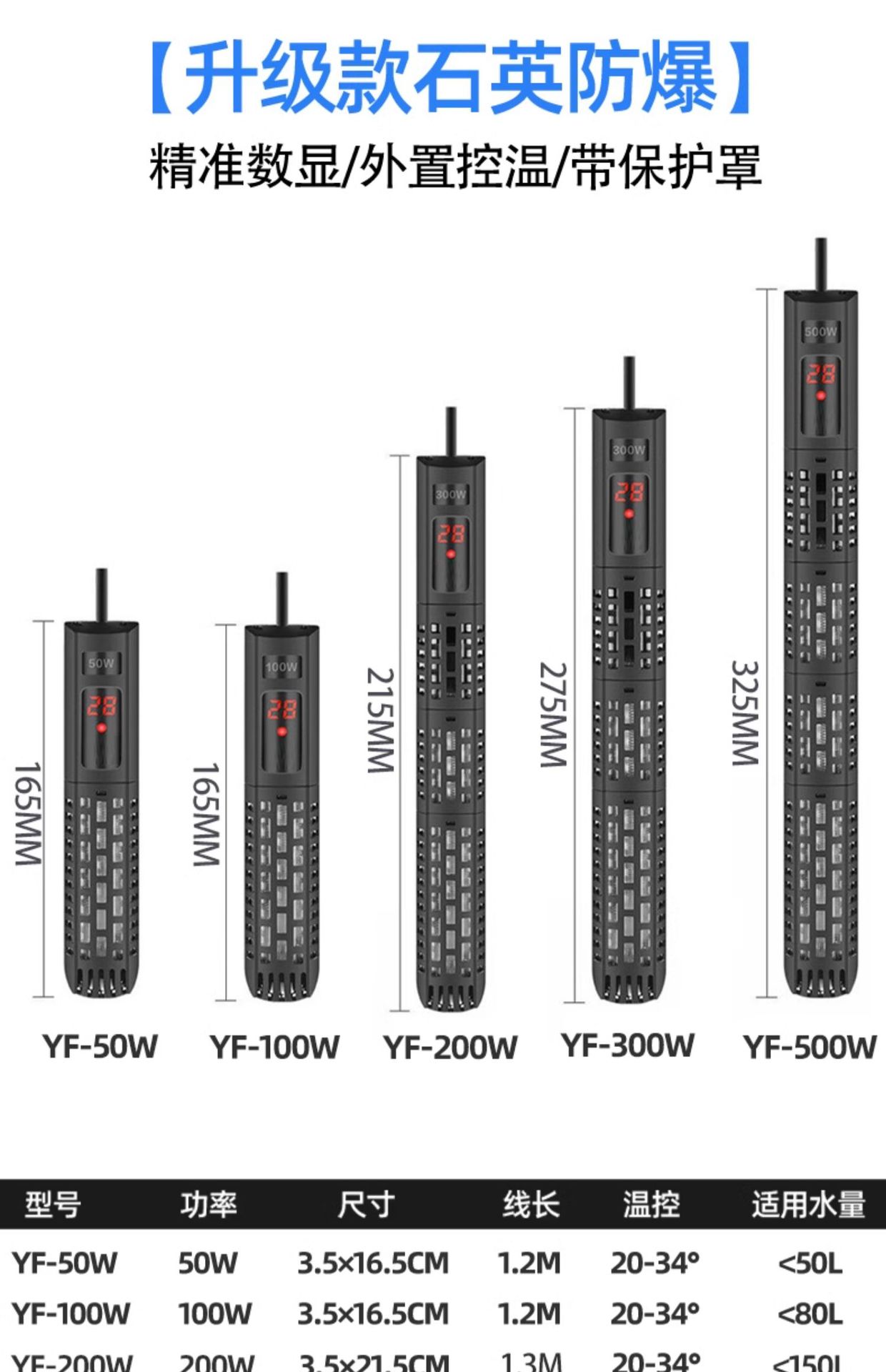 가열 막대 수조 자동 항온 소형 가열 막대 히터 온도계 히터 열대어 석영 방폭형