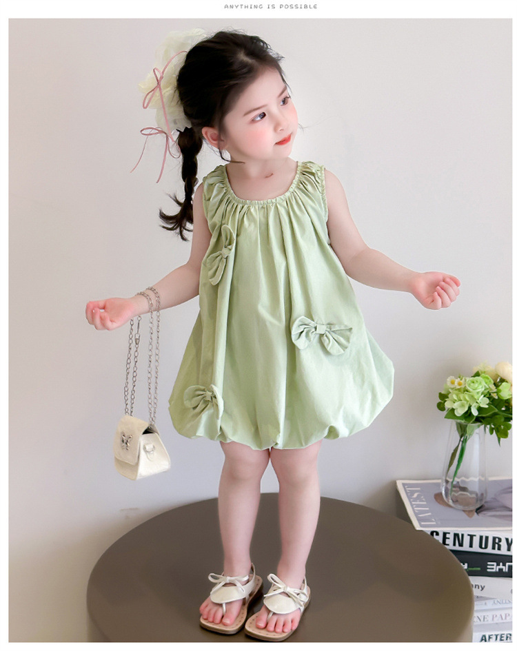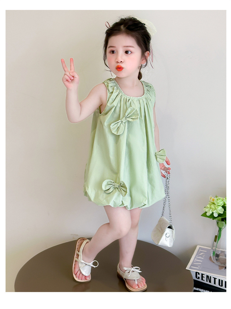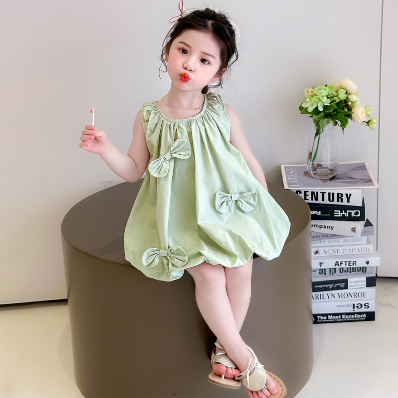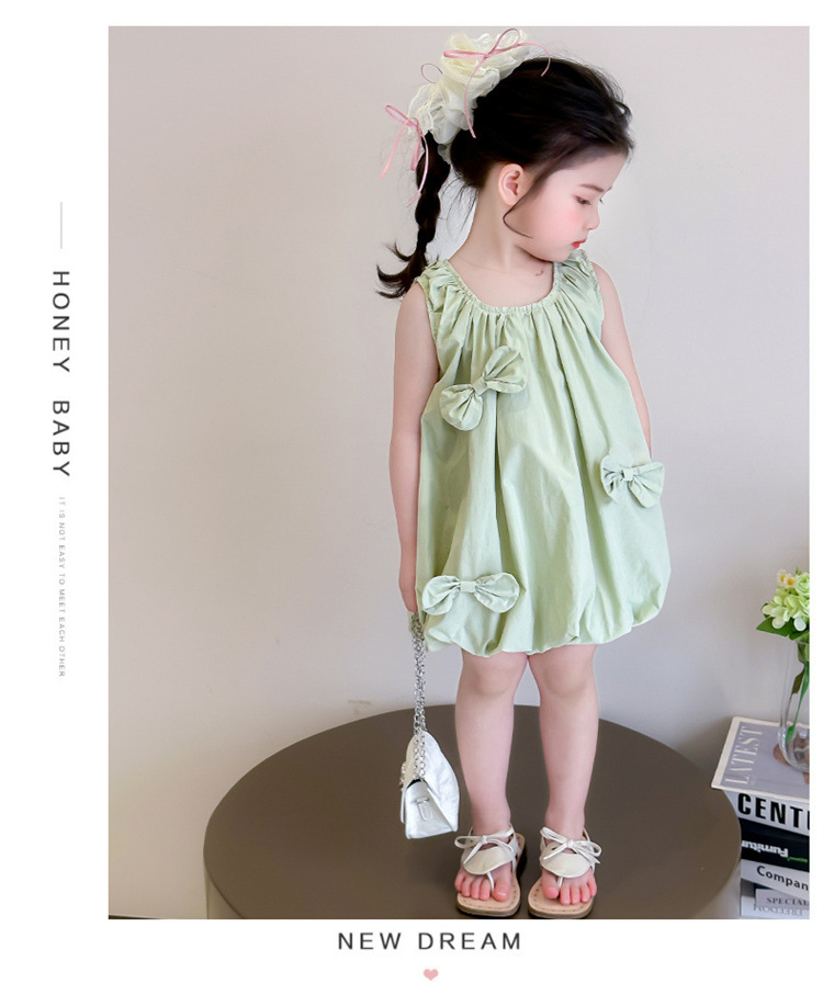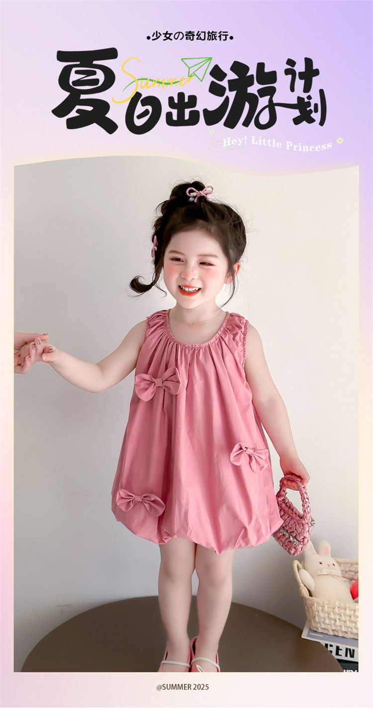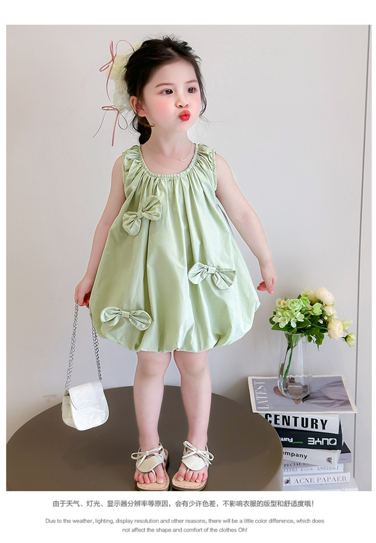 소녀의 활 거품 원피스 2025 여름 새로운 패션 소녀의 세련된 공주 원피스 어린이 여름 원피스스토어 가기