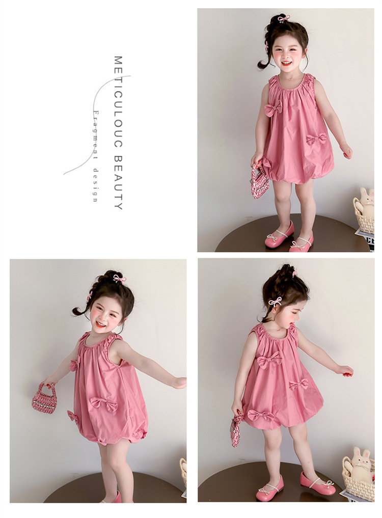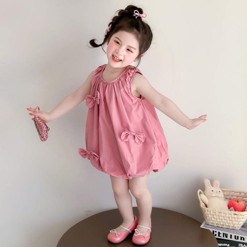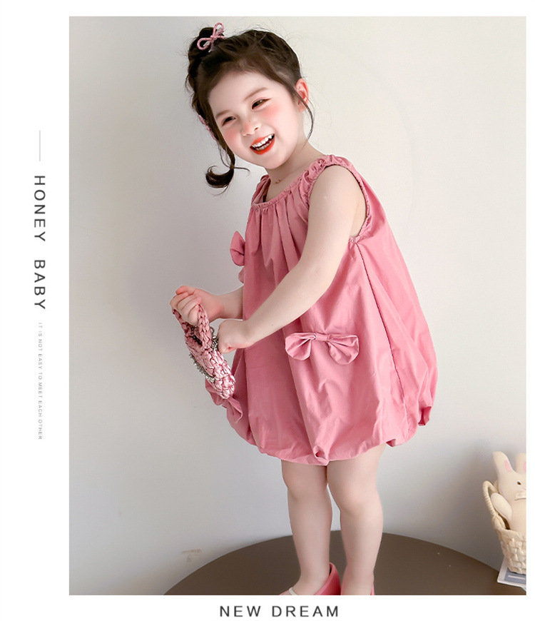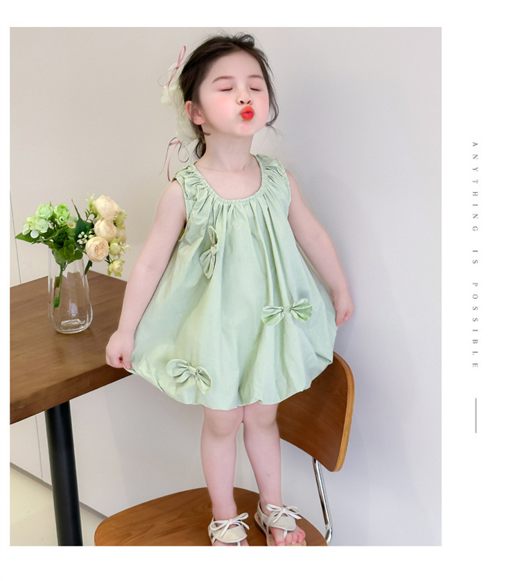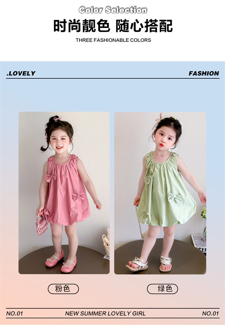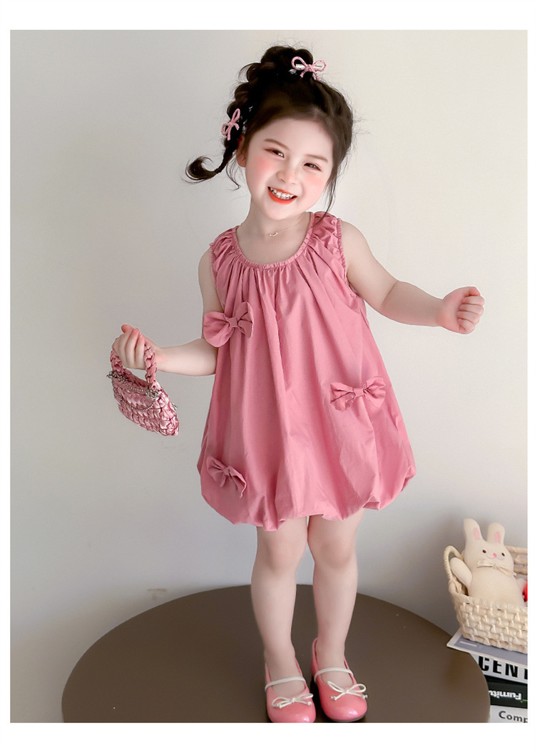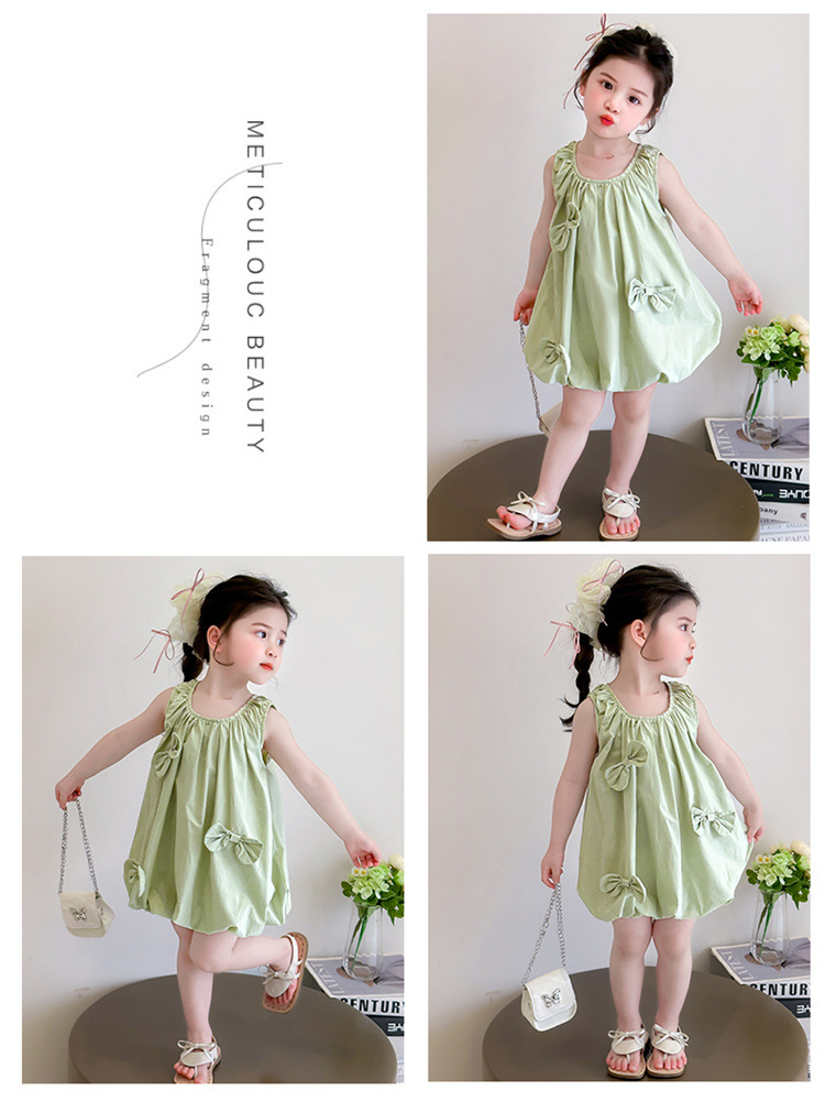 소녀의 활 거품 원피스 2025 여름 새로운 패션 소녀의 세련된 공주 원피스 어린이 여름 원피스스토어 가기