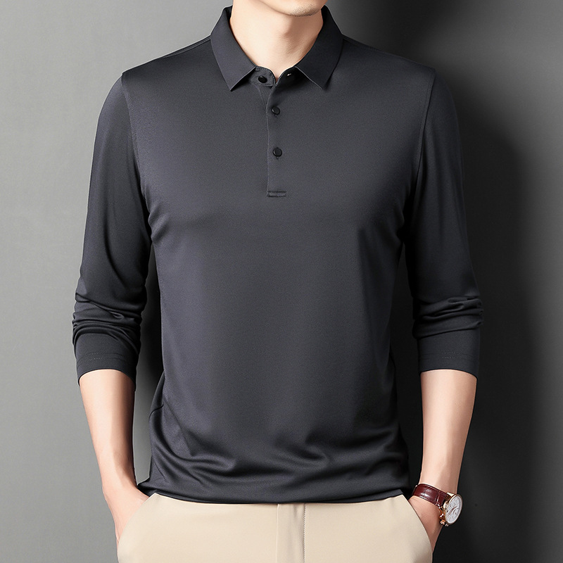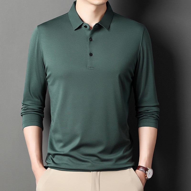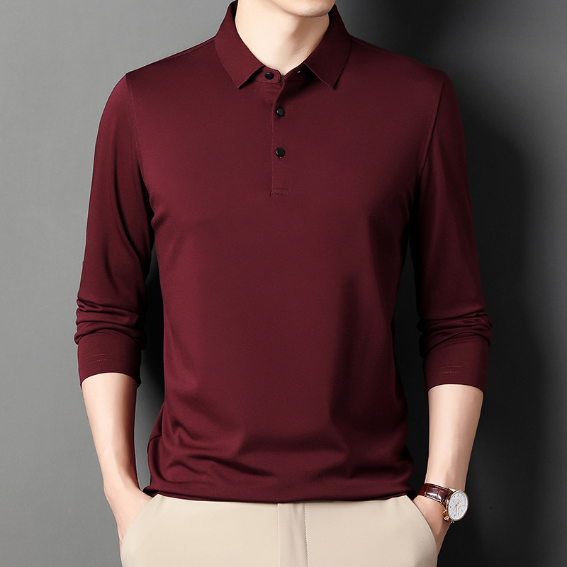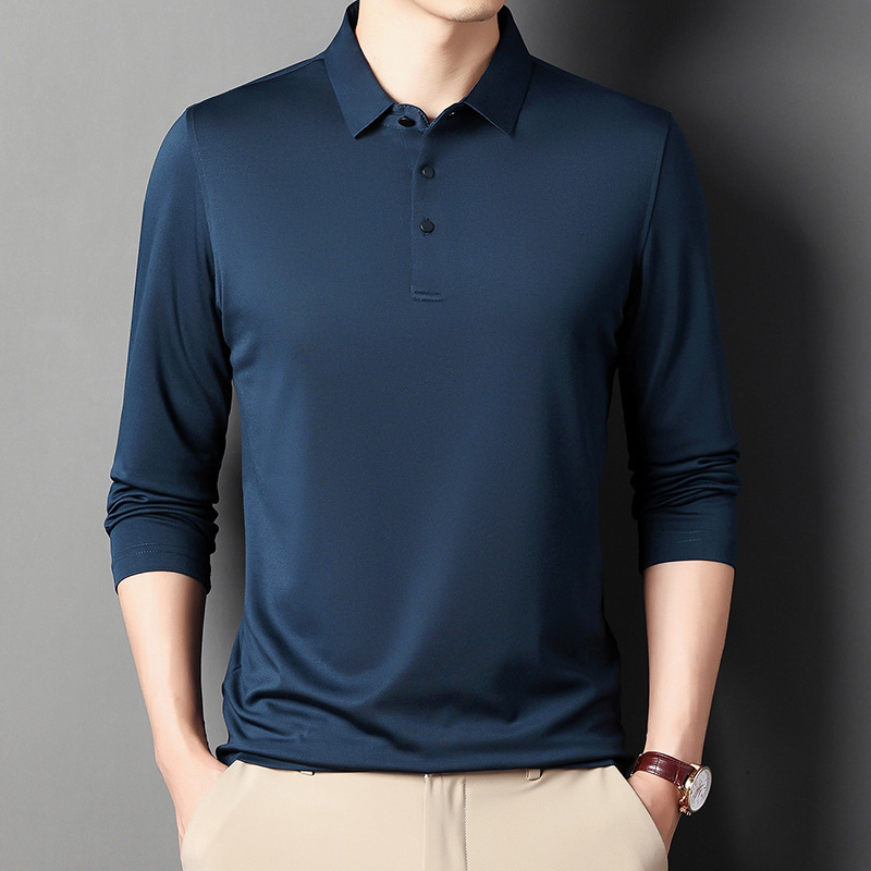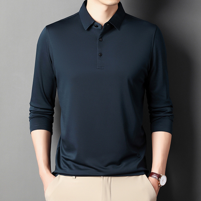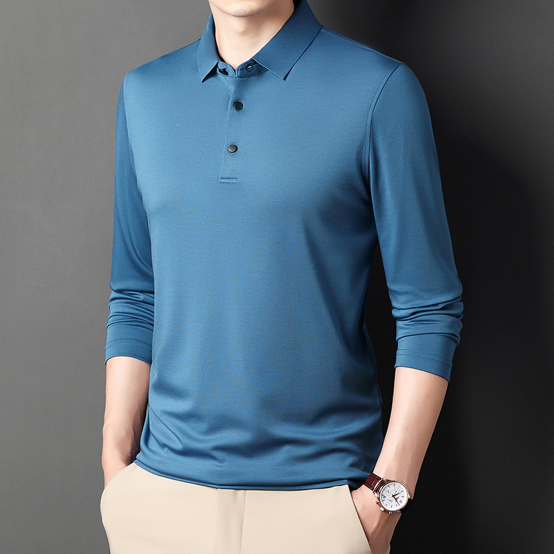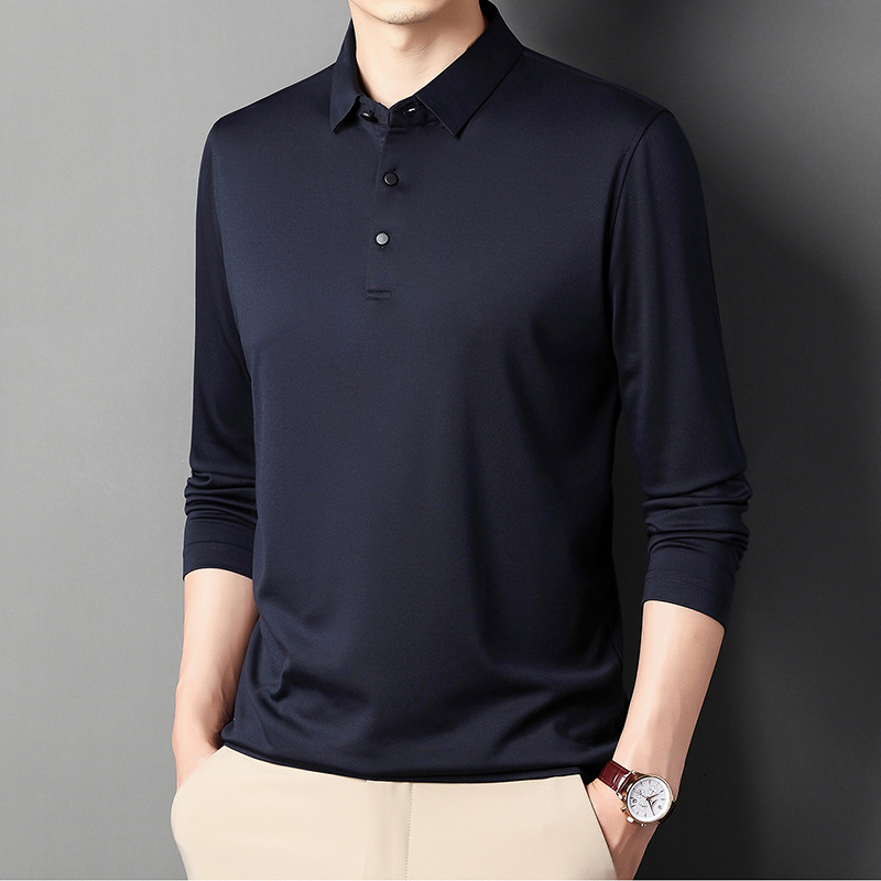 봄과 가을 얇은 긴팔 티셔츠 남성용 새 라펠 폴로 셔츠 캐주얼 솔리드 컬러 남성용 바닥 탑 드롭 배송스토어 가기