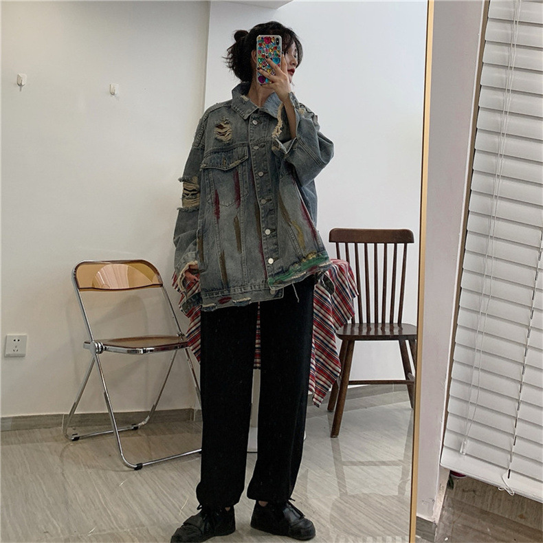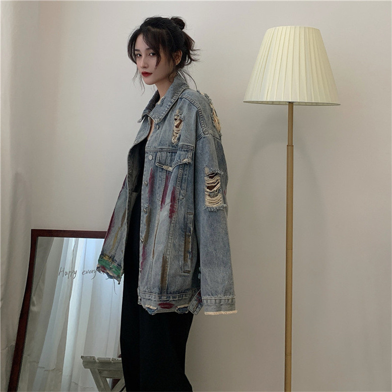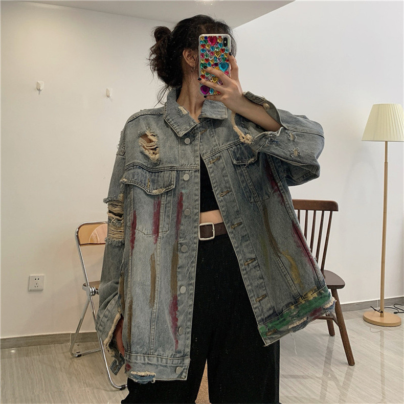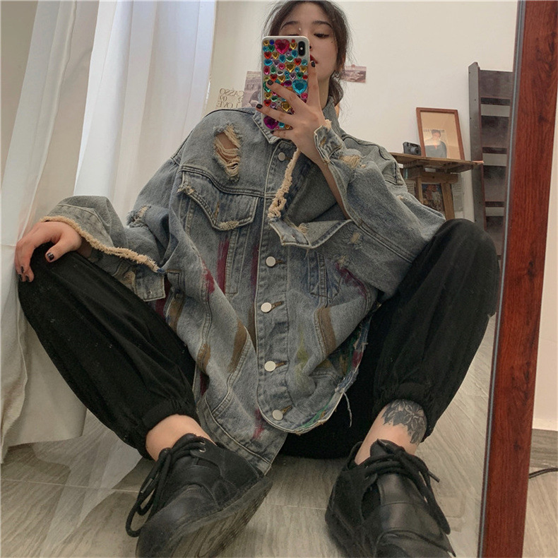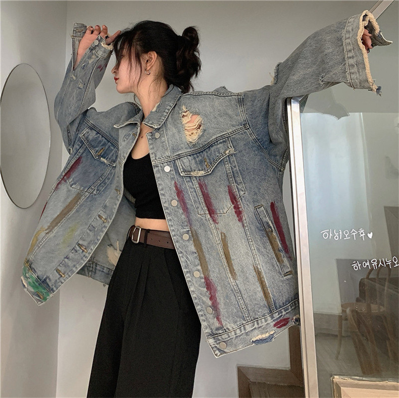 미국 레트로 홍콩 스타일 그래피티 데님 재킷 여성용 봄/가을 2026 디자인 감각적인 틈새시장 스타일 재킷 상의스토어 가기