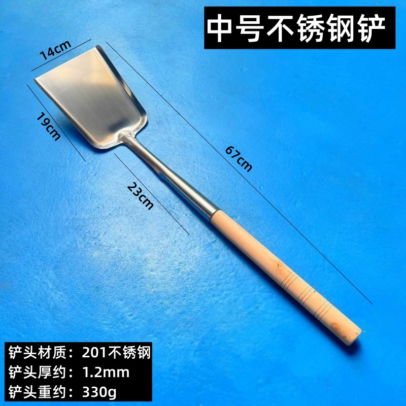 • [중형 스탬핑] 스테인레스 스틸 삽 [나무 손잡이 포함]