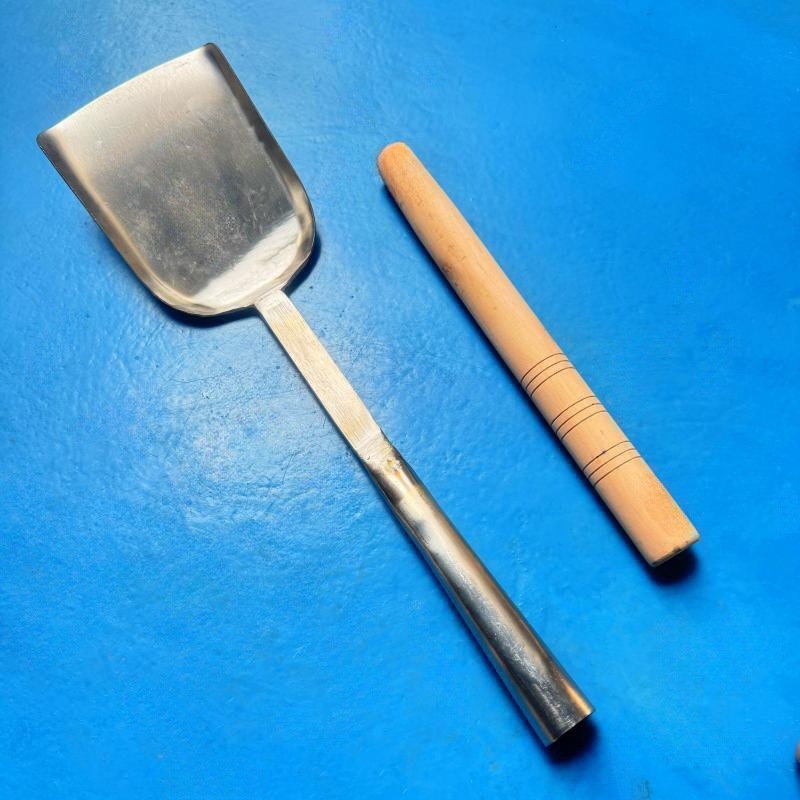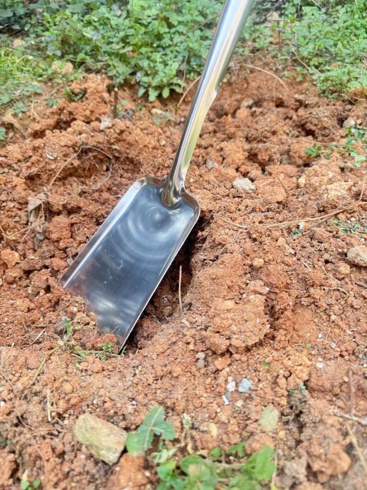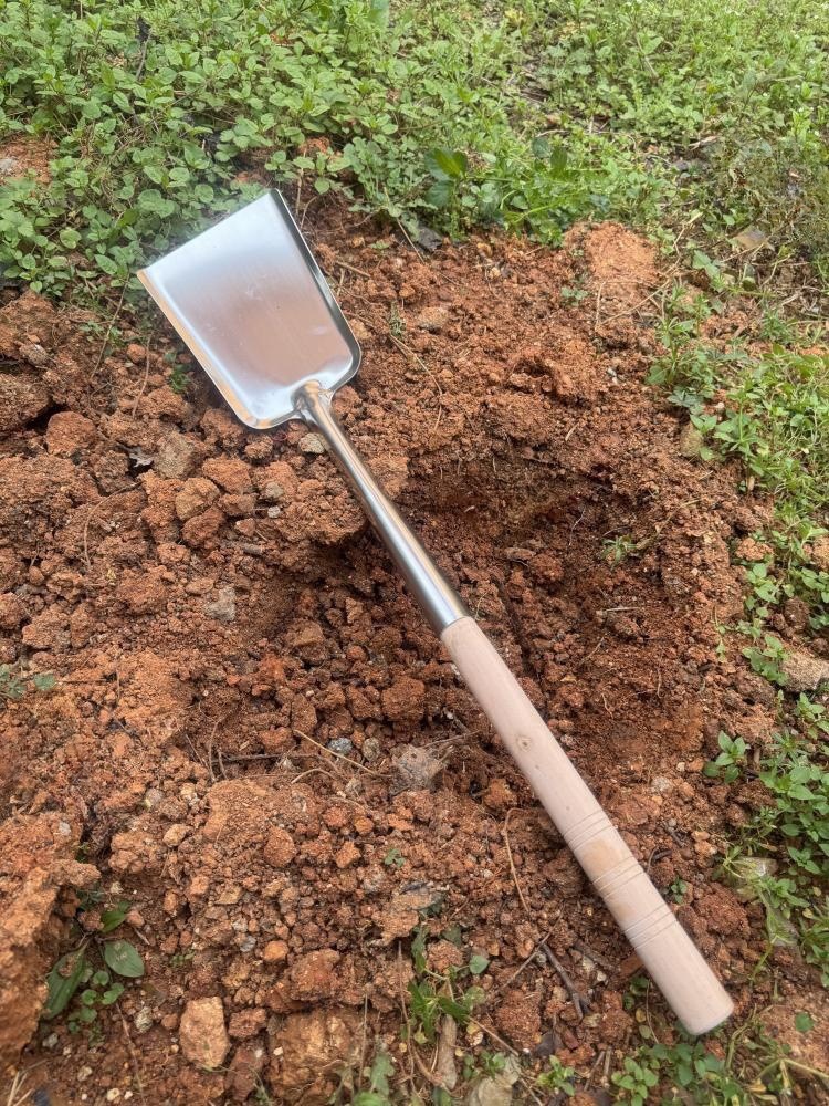 • [수제 단조] 스테인레스 스틸 삽 [나무 손잡이 포함]