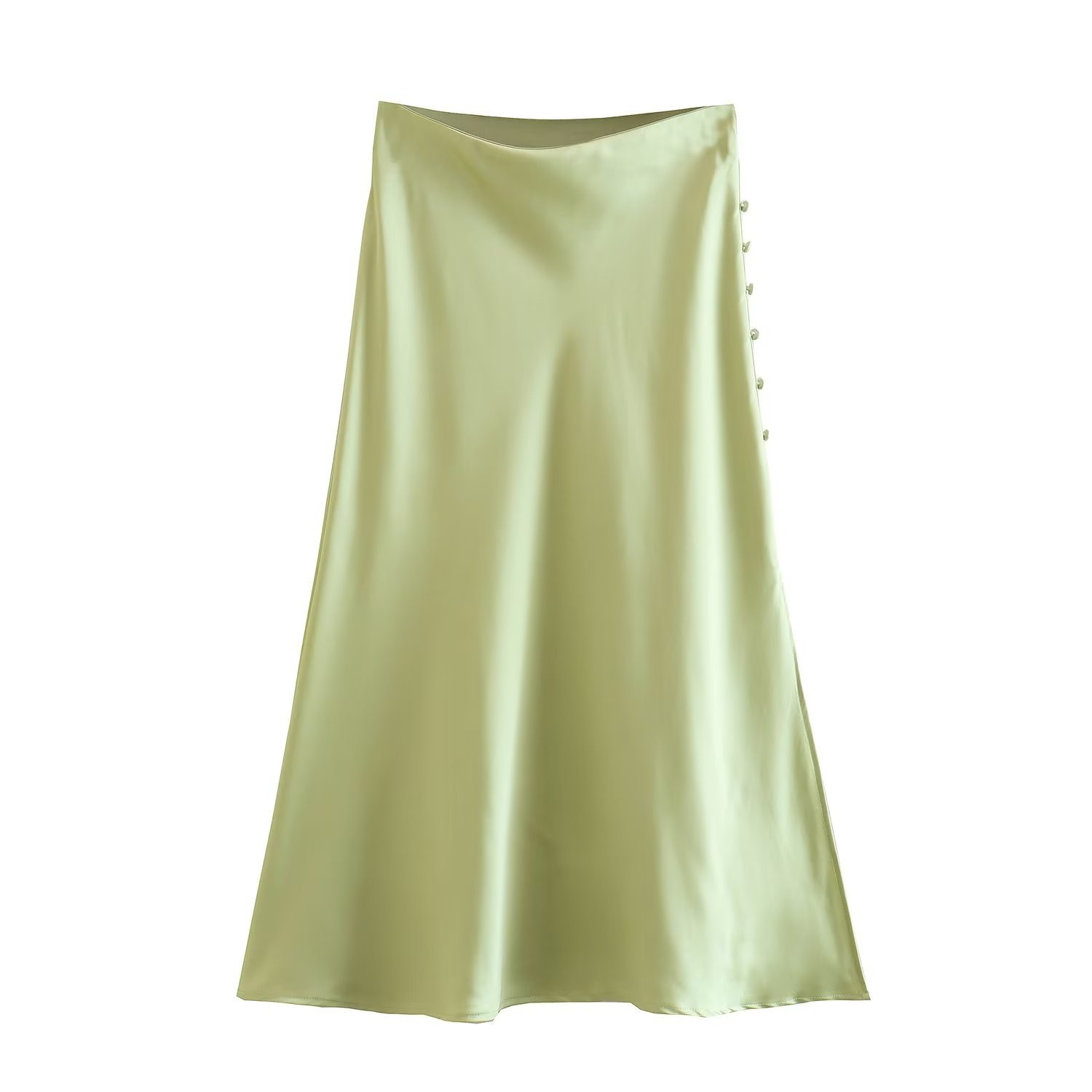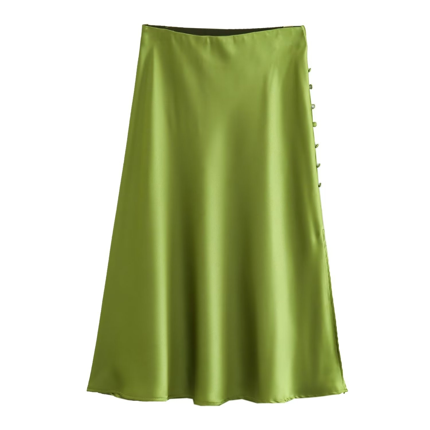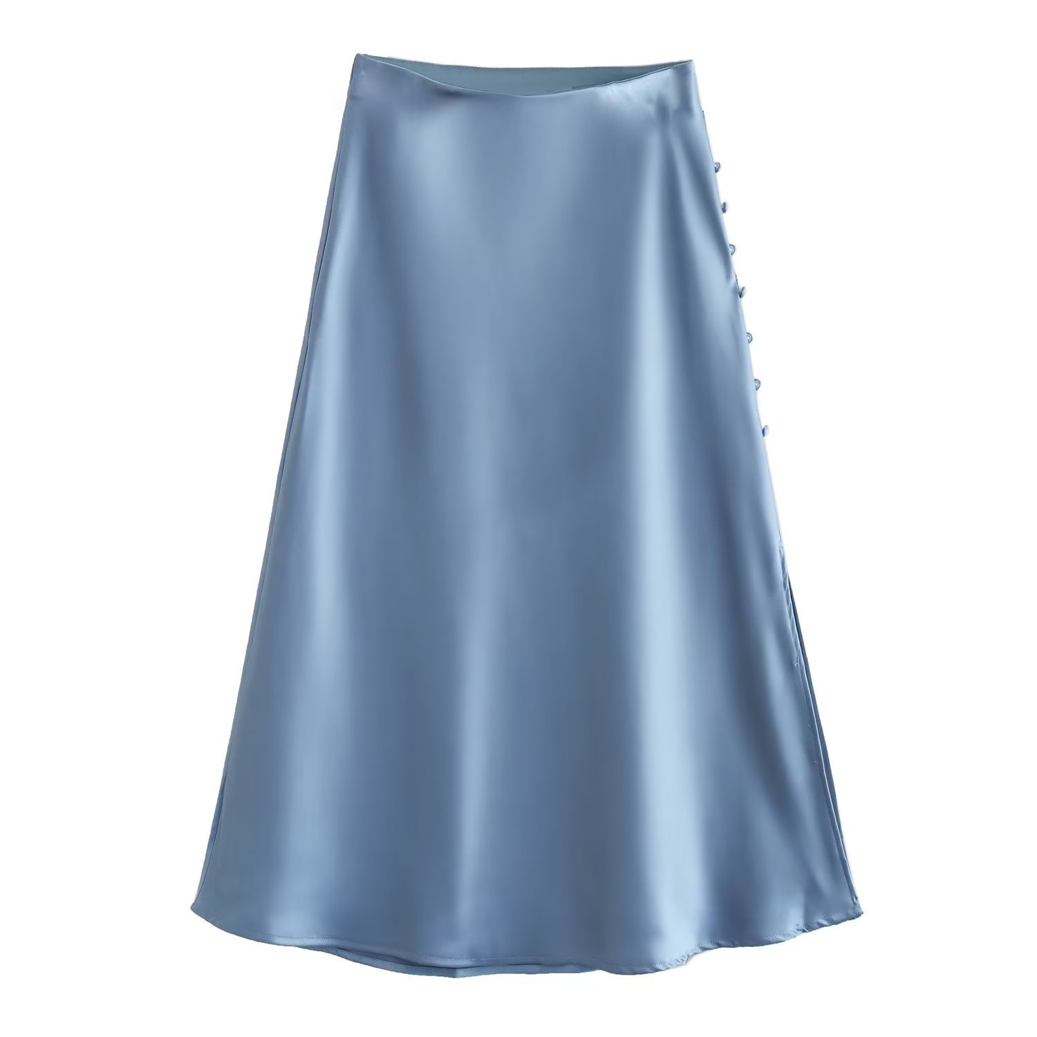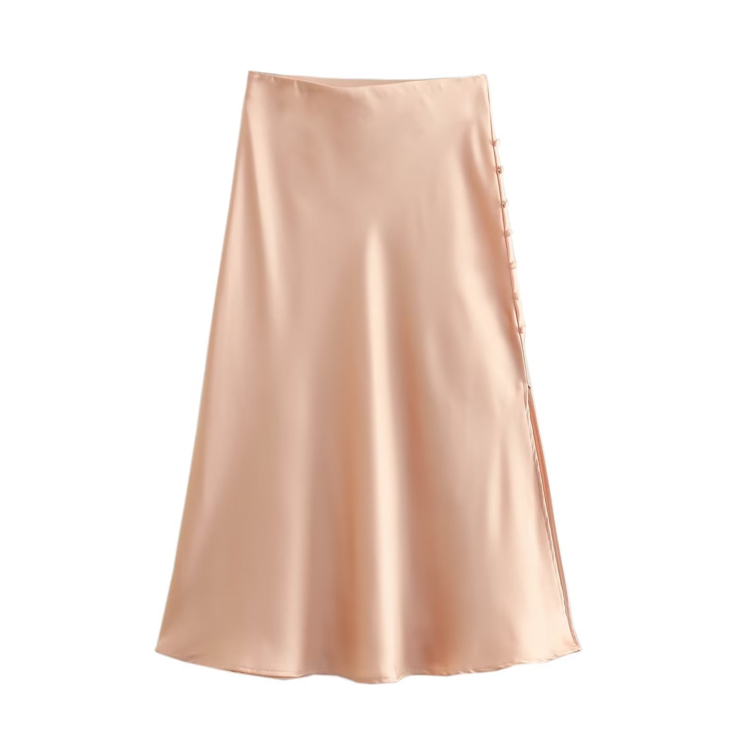 UC & ZA 대외 무역 국경 여성복 2025 여름 새로운 봄 허리 실크 새틴 텍스처 버튼 장식 스플릿 스커트