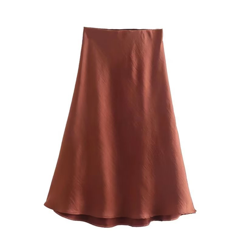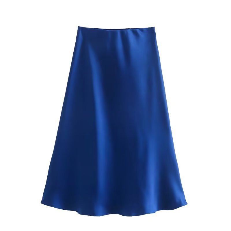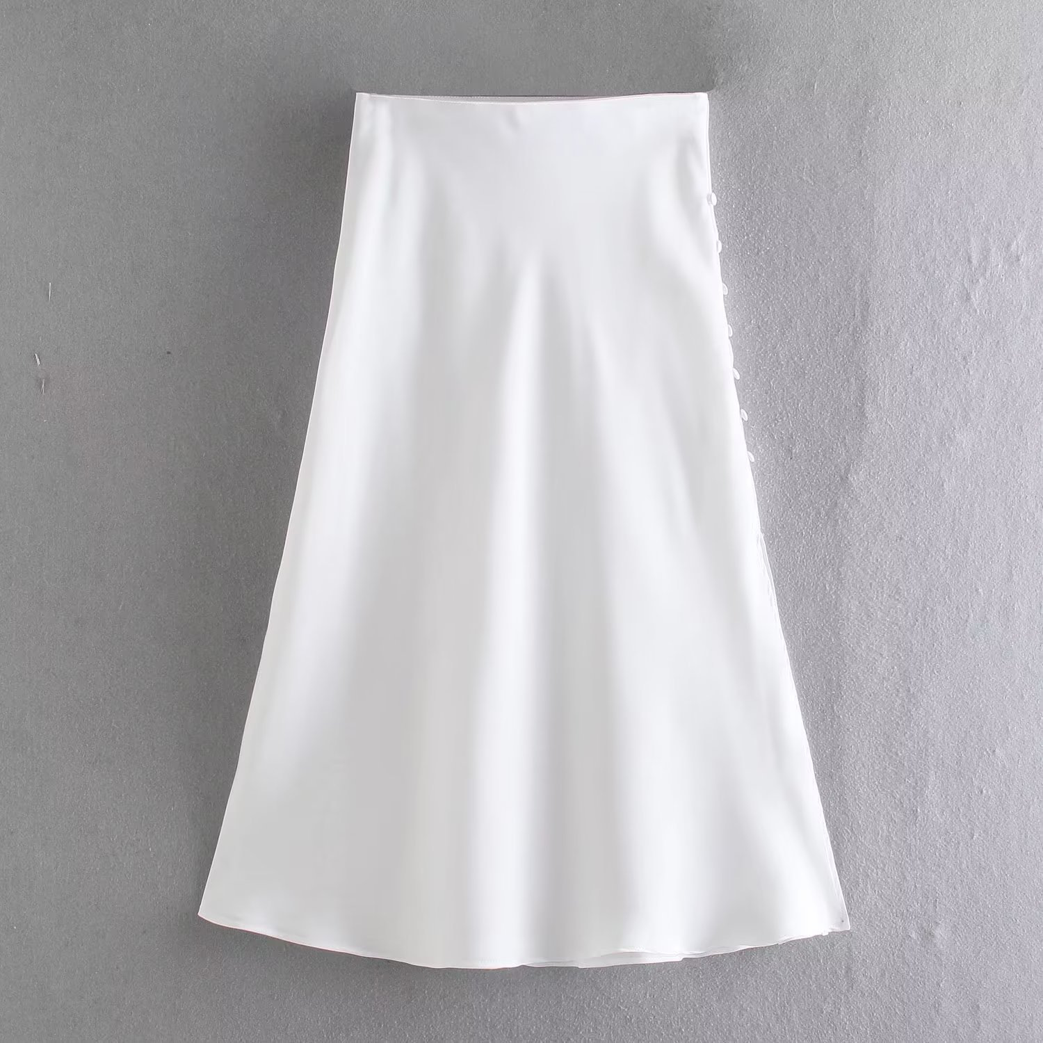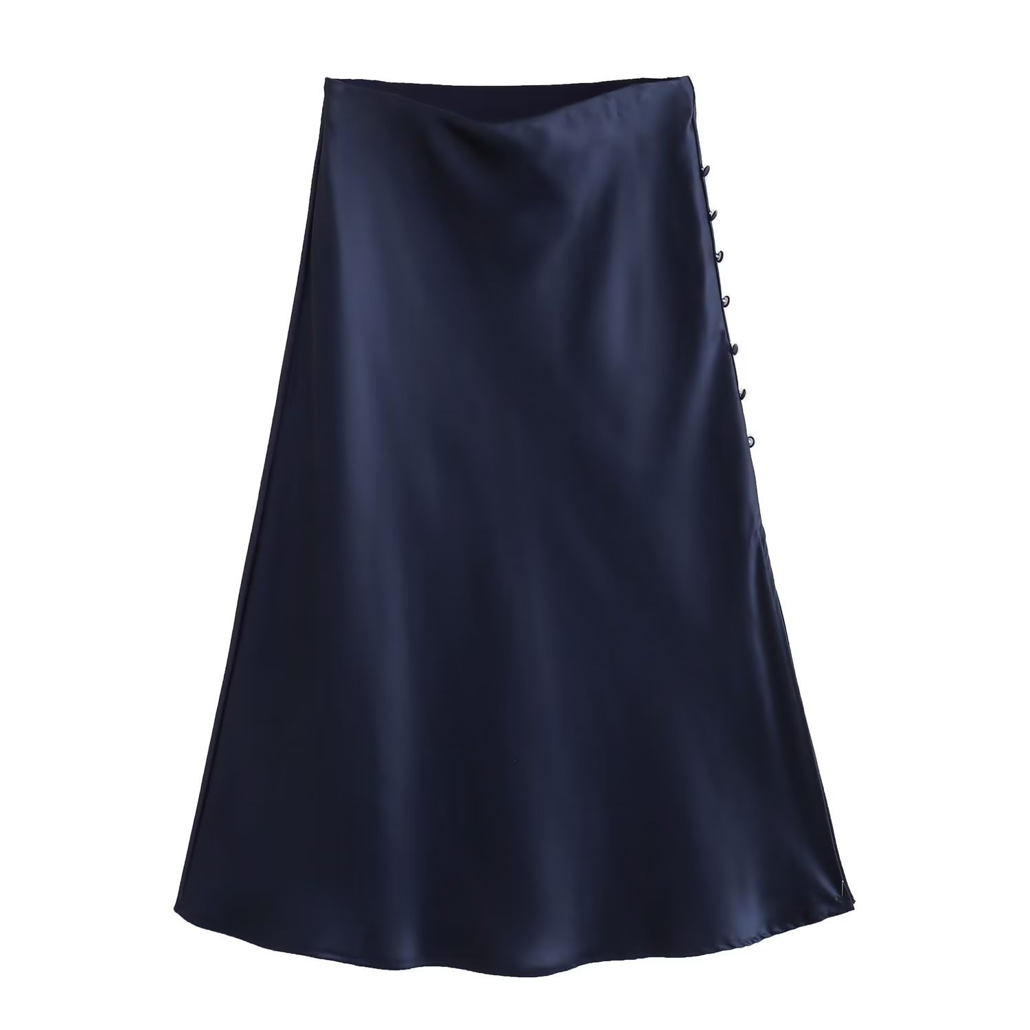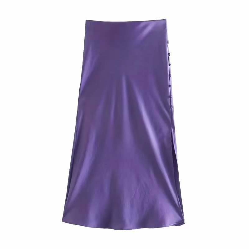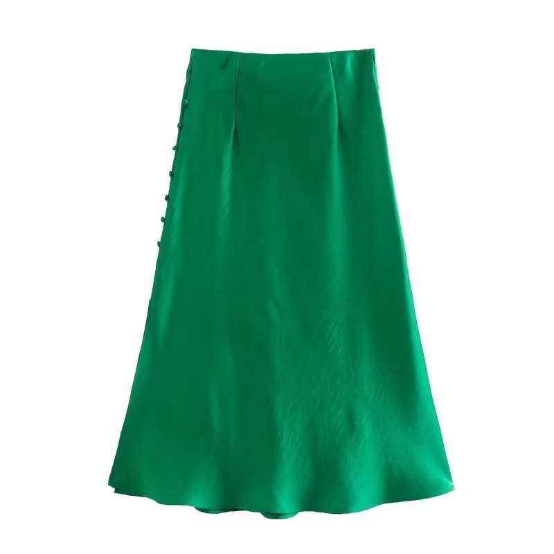 UC & ZA 대외 무역 국경 여성복 2025 여름 새로운 봄 허리 실크 새틴 텍스처 버튼 장식 스플릿 스커트