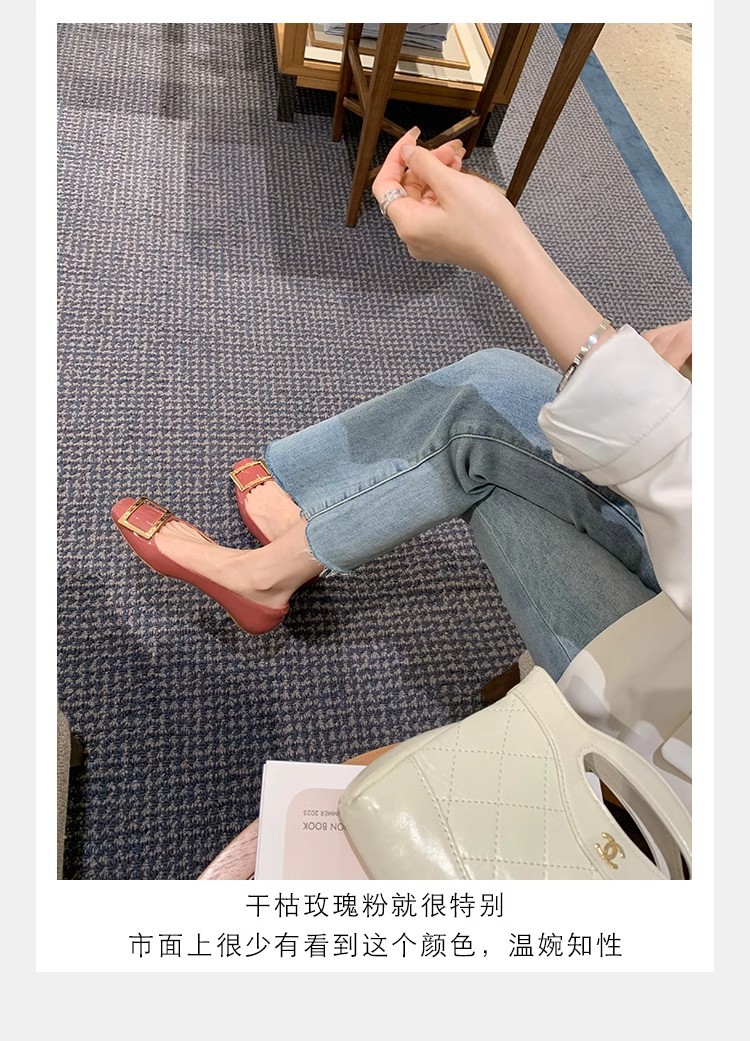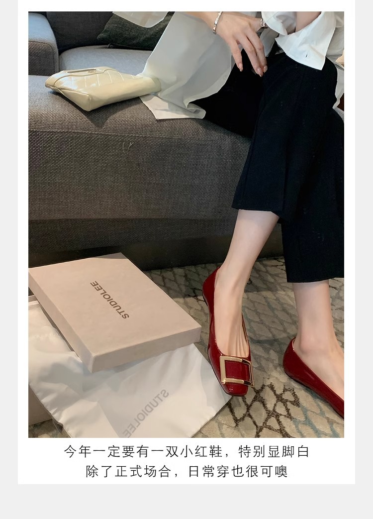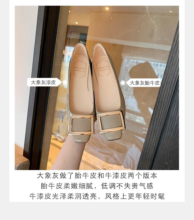 재고 통근 OL 클래식 작은 광장 올매치 로우 힐 우아한 금속 스퀘어 버클 로우 입 캐주얼 플랫 슈즈스토어 가기