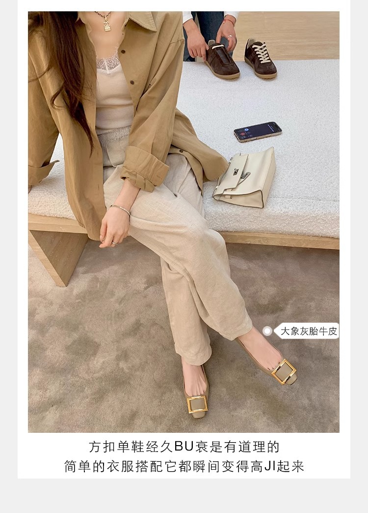 재고 통근 OL 클래식 작은 광장 올매치 로우 힐 우아한 금속 스퀘어 버클 로우 입 캐주얼 플랫 슈즈