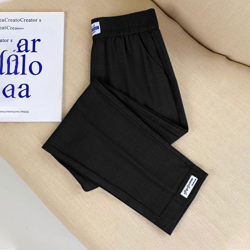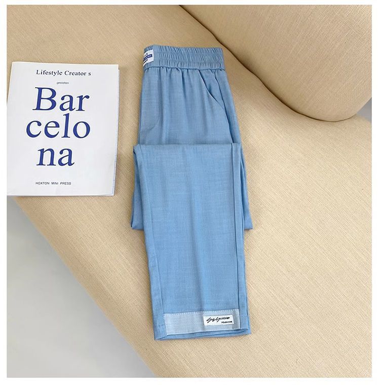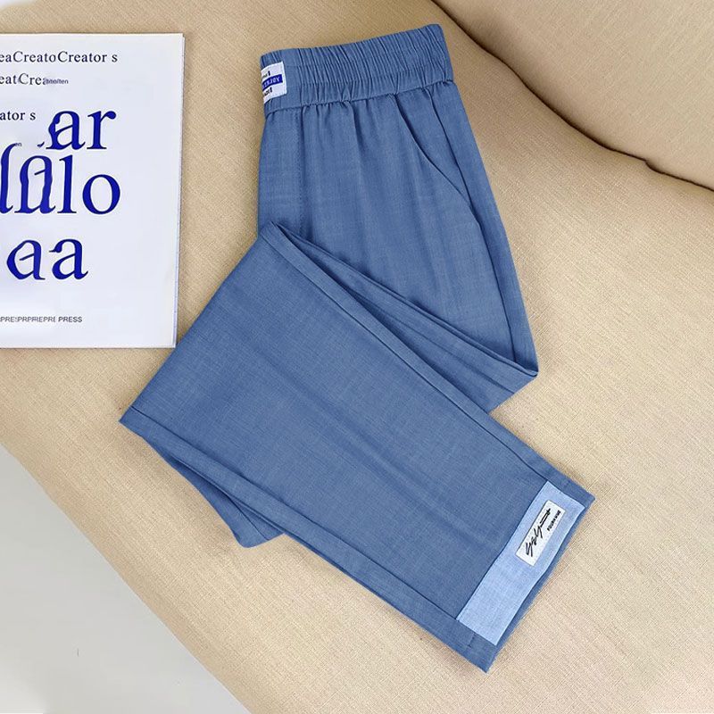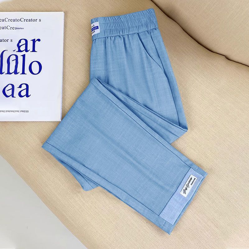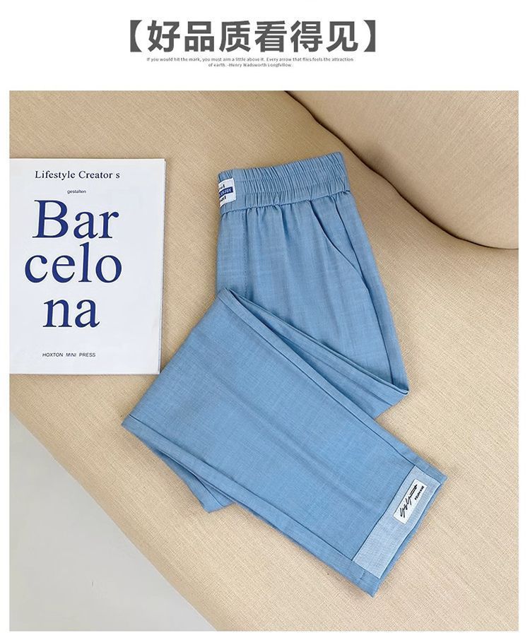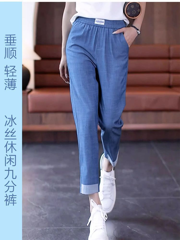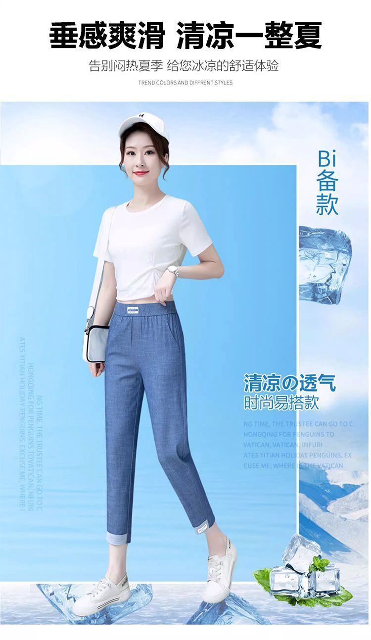 싱글/두 조각 아이스 실크 여성용 바지 얇은 여름 여덟 또는 아홉 울타리 어머니 높은 허리 슬리밍 플러스 사이즈 캐주얼 스트레이트 하렌 바지스토어 가기