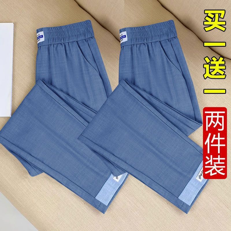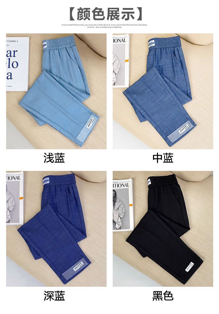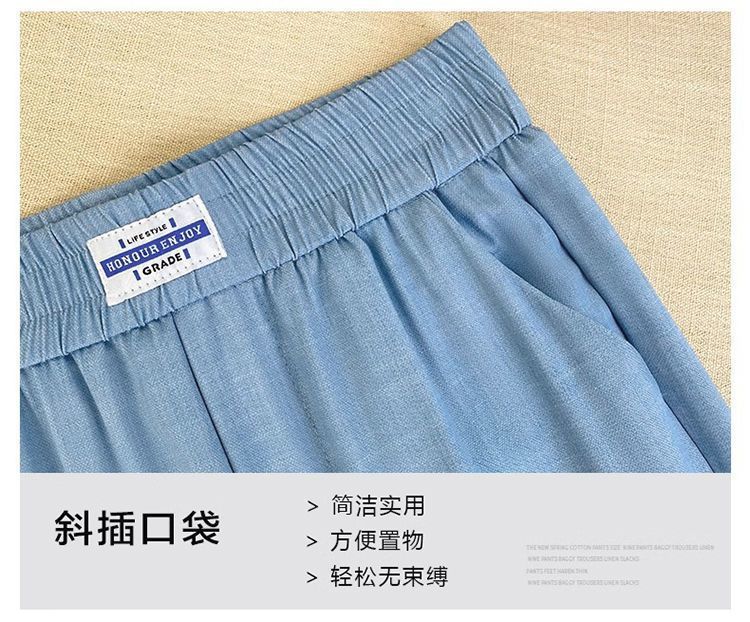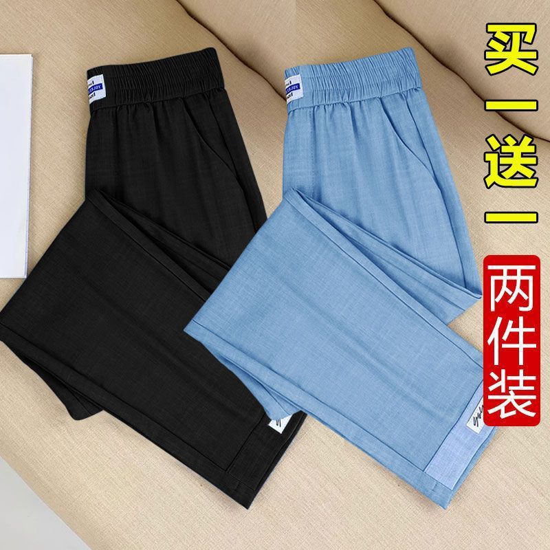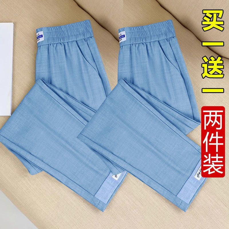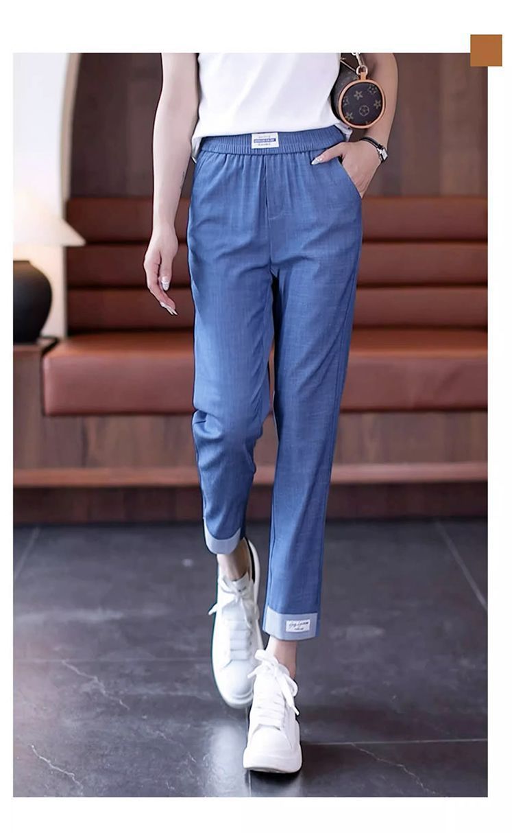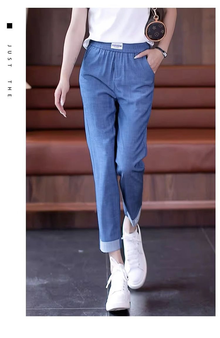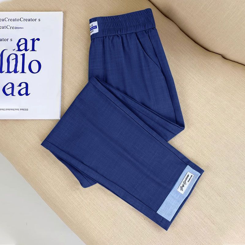 싱글/두 조각 아이스 실크 여성용 바지 얇은 여름 여덟 또는 아홉 울타리 어머니 높은 허리 슬리밍 플러스 사이즈 캐주얼 스트레이트 하렌 바지스토어 가기