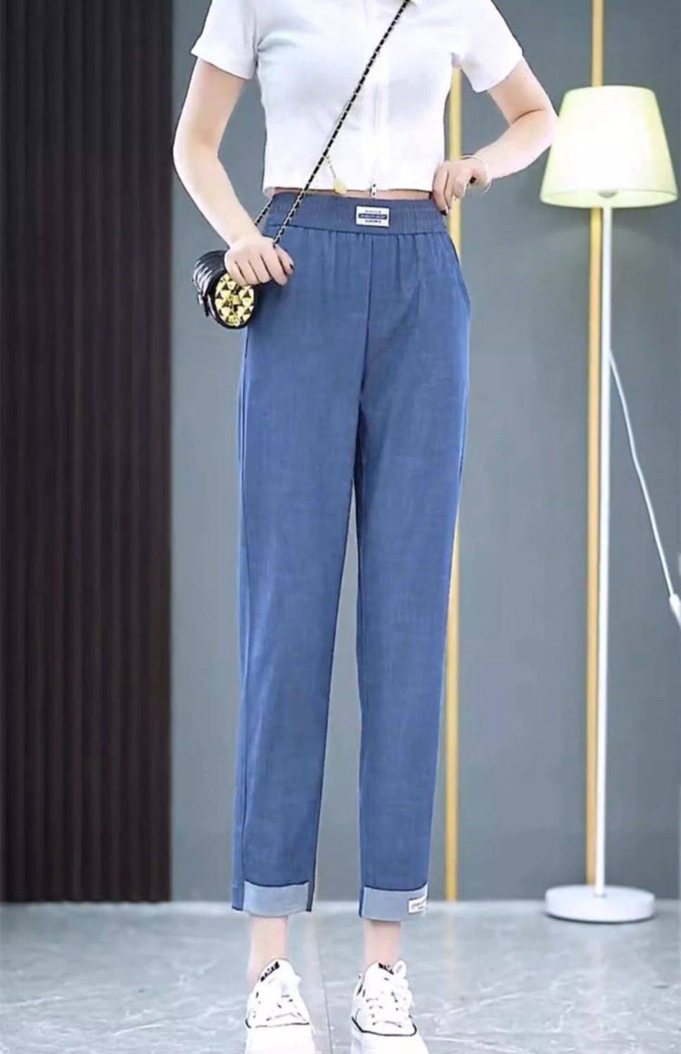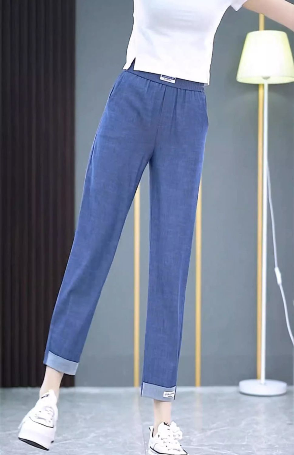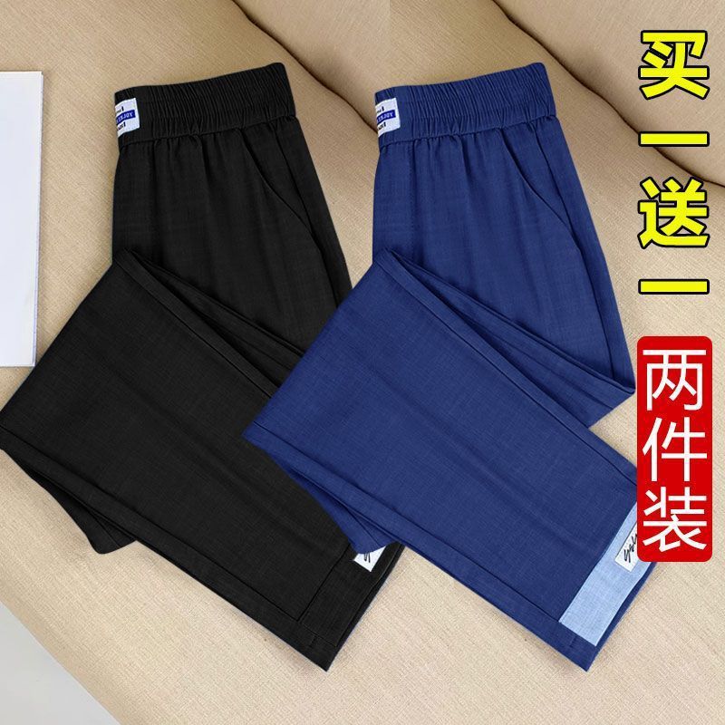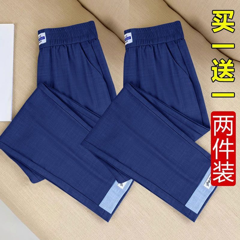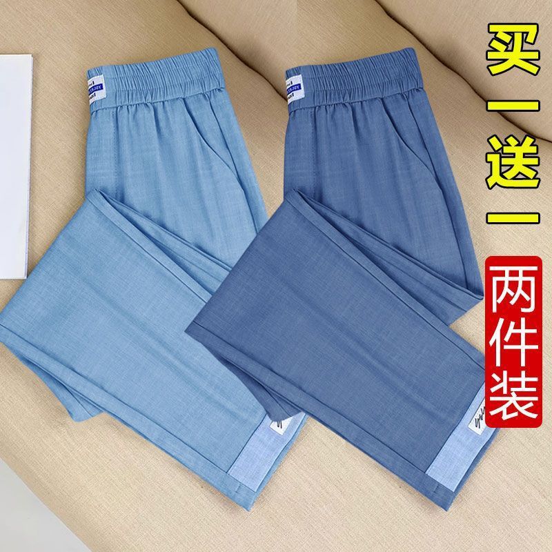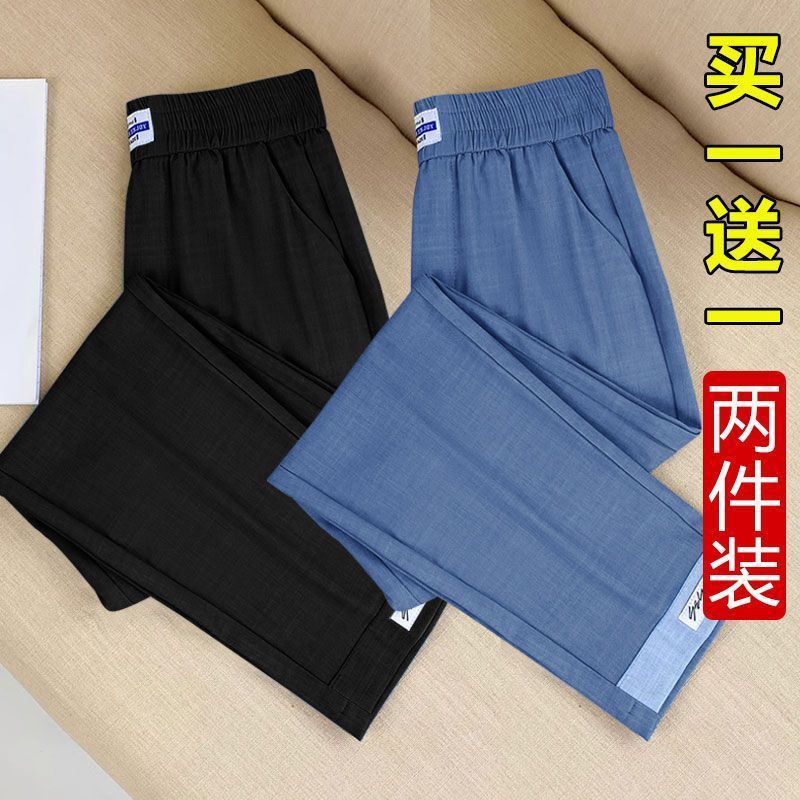 싱글/두 조각 아이스 실크 여성용 바지 얇은 여름 여덟 또는 아홉 울타리 어머니 높은 허리 슬리밍 플러스 사이즈 캐주얼 스트레이트 하렌 바지스토어 가기