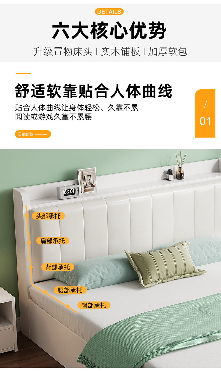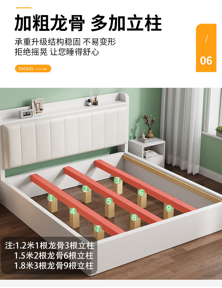 단단한 나무 침대 더블 1.82 m 침실 큰 침대 가구 1.5 m 작은 아파트 임대 방 1.2 간단한 싱글 침대스토어 가기