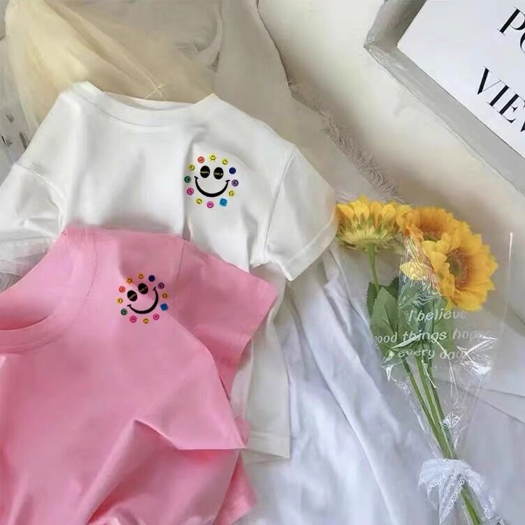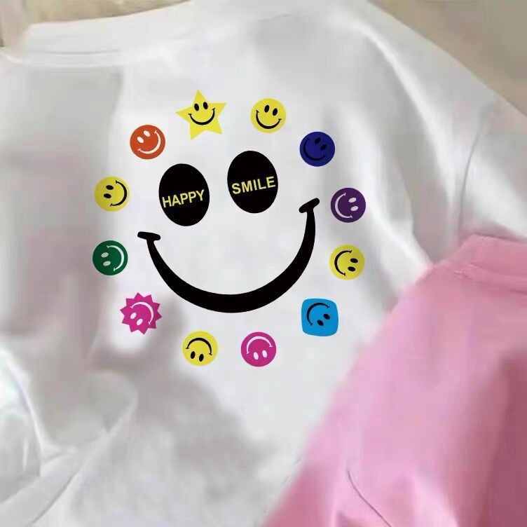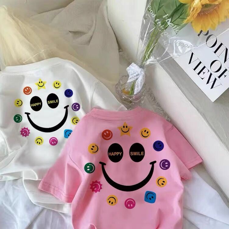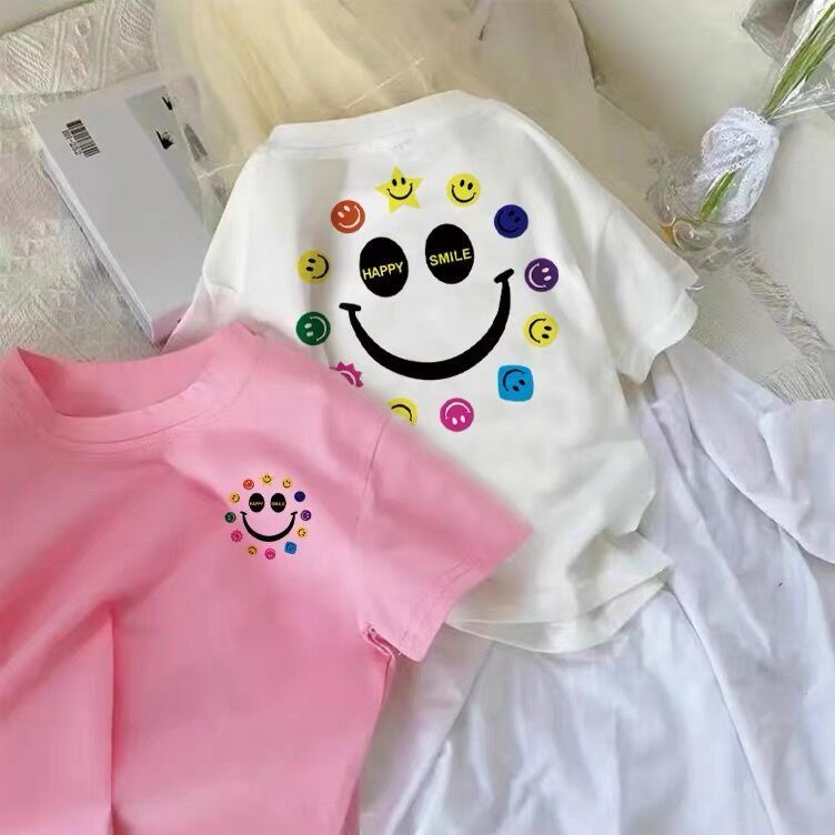 여름 남아 및 여아용 반팔 티셔츠, 유아용 패셔너블한 아동용 맞춤형 트렌디 브랜드 패셔너블한 인터넷 연예인 만화 웃는 얼굴 반팔스토어 가기