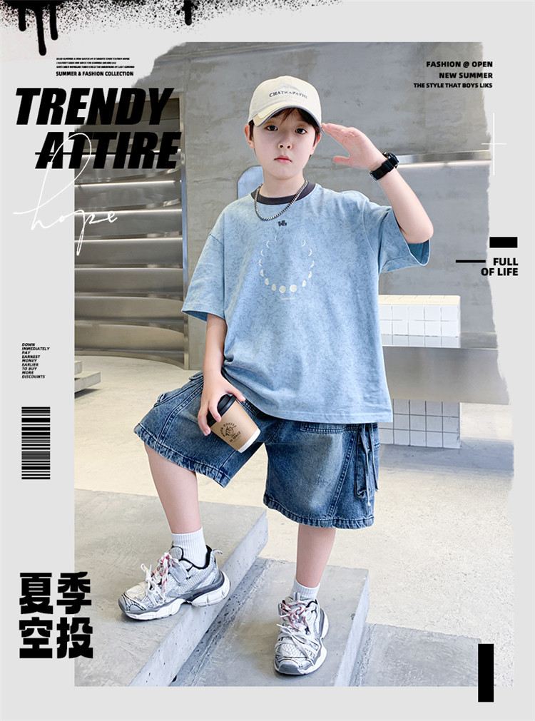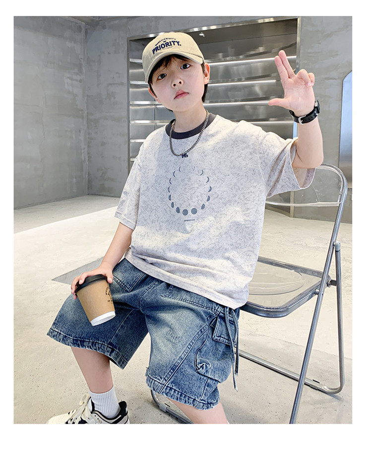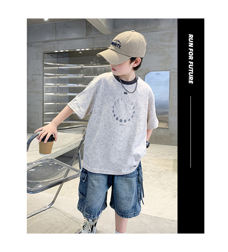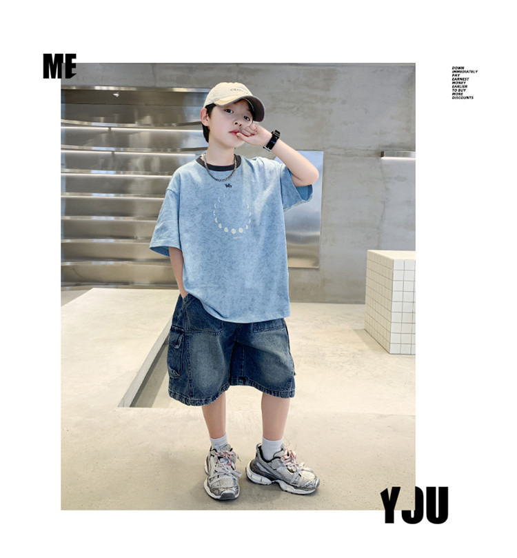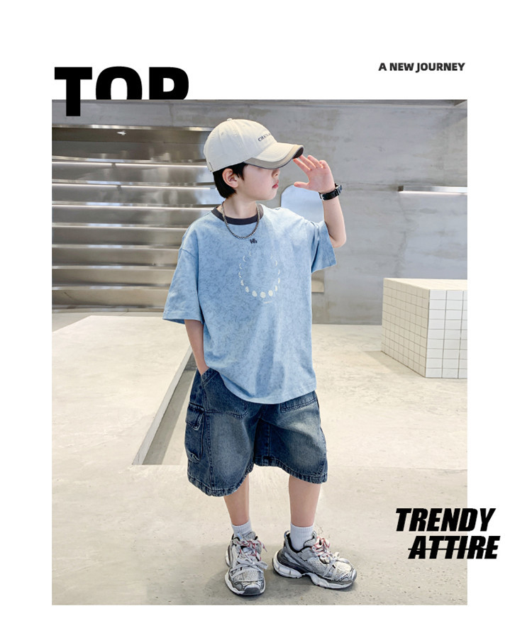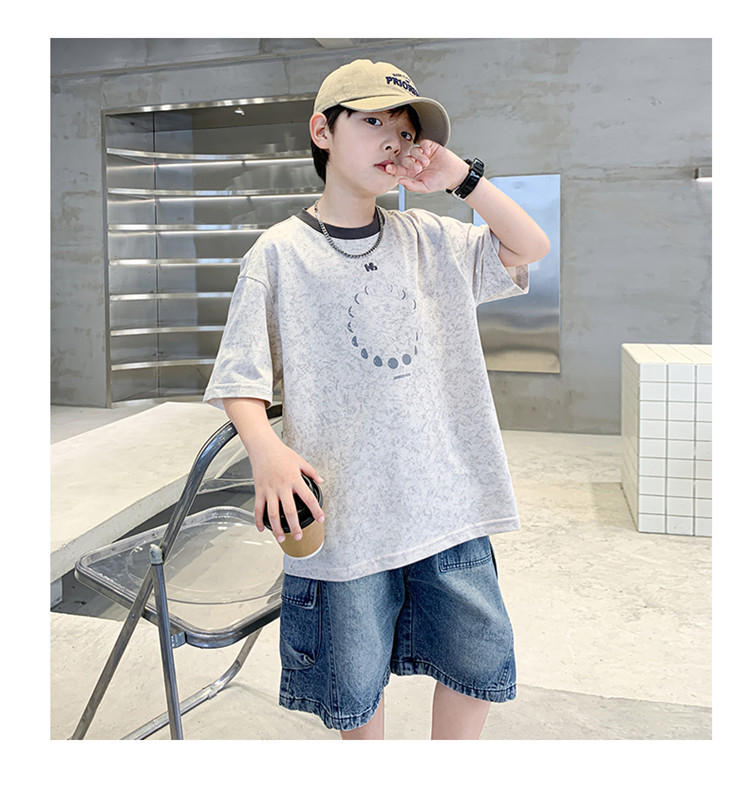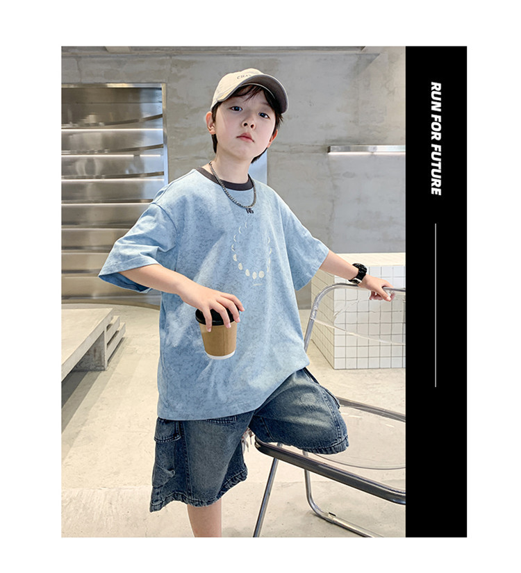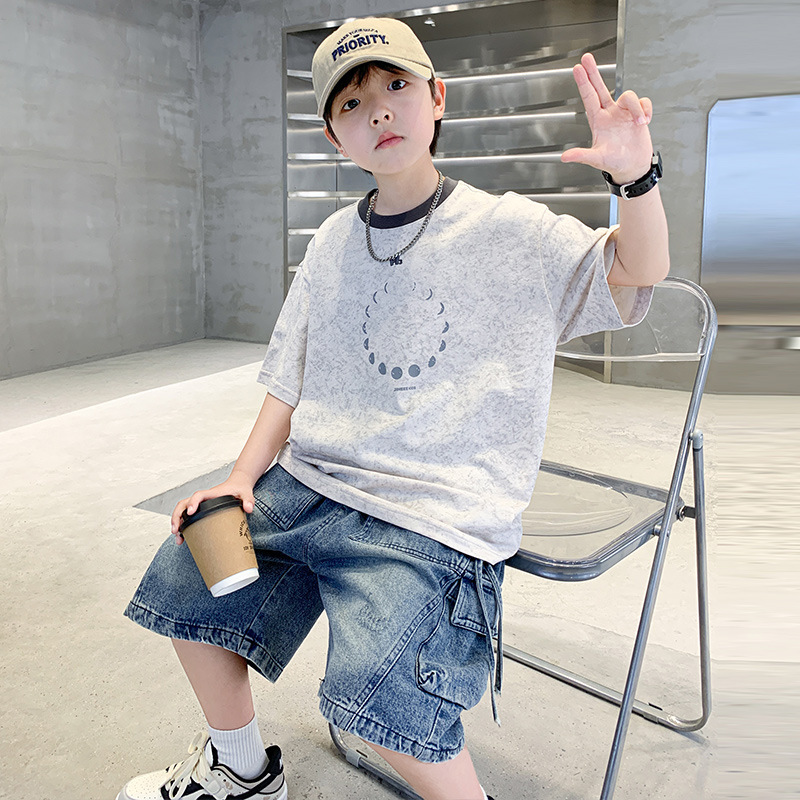 아동 의류 소년 여름 반팔 티셔츠 2025 새로운 스타일 중대형 어린이 여름 소년 여름 잘 생긴 탑 t 도매스토어 가기
