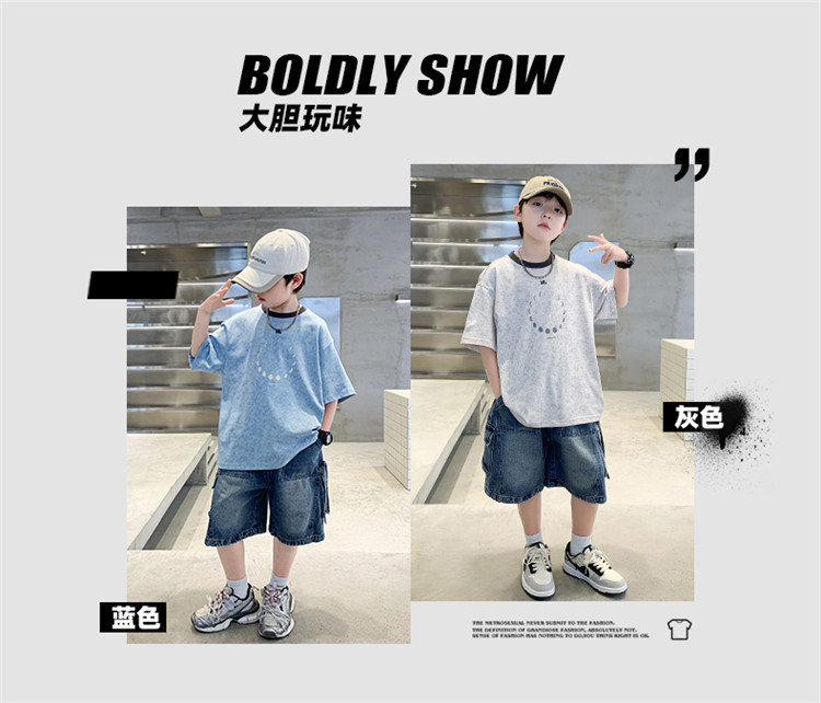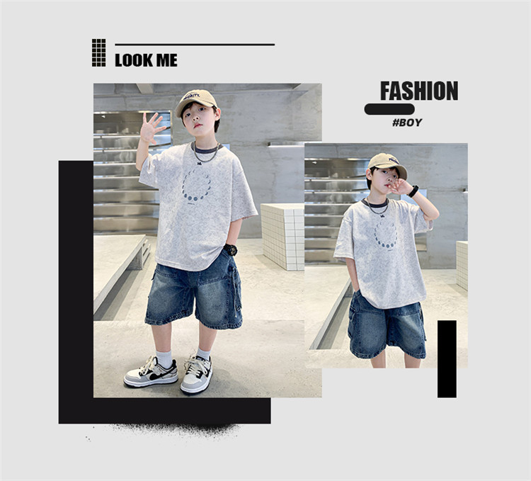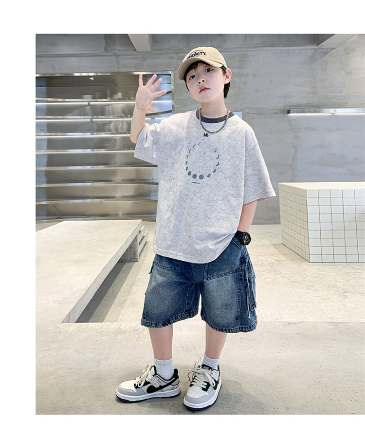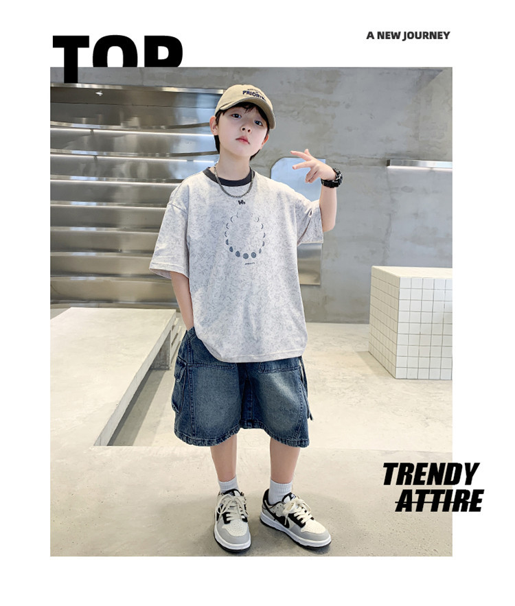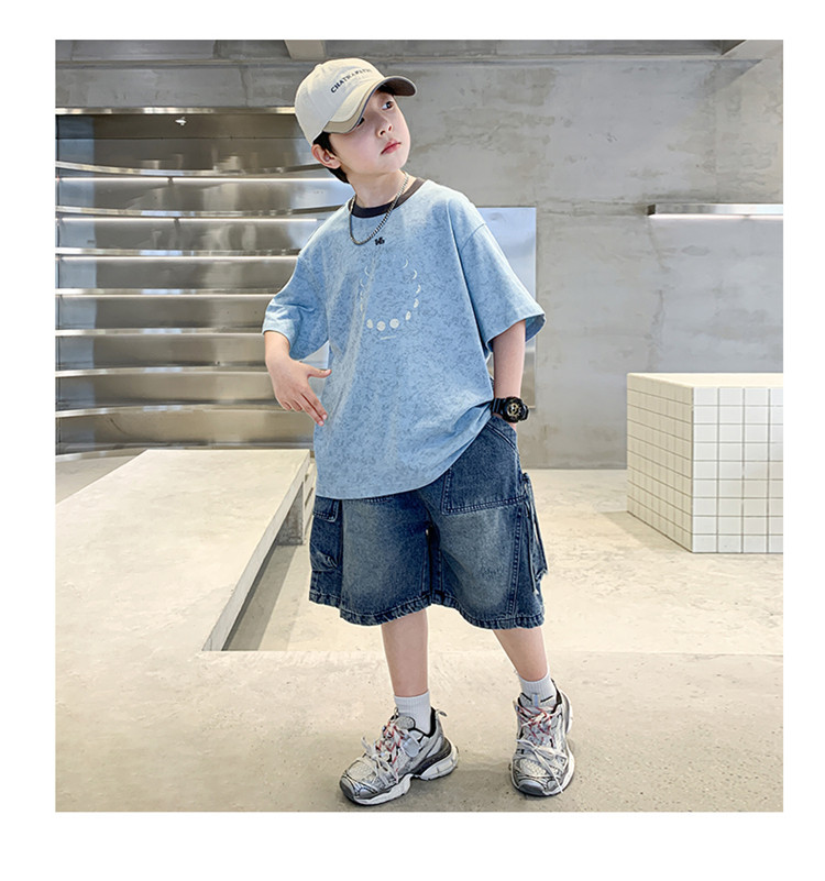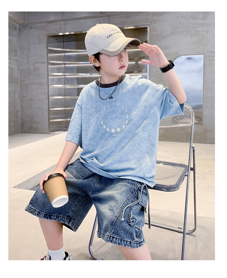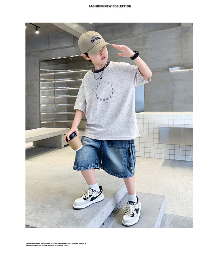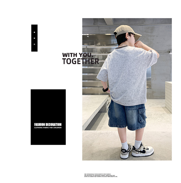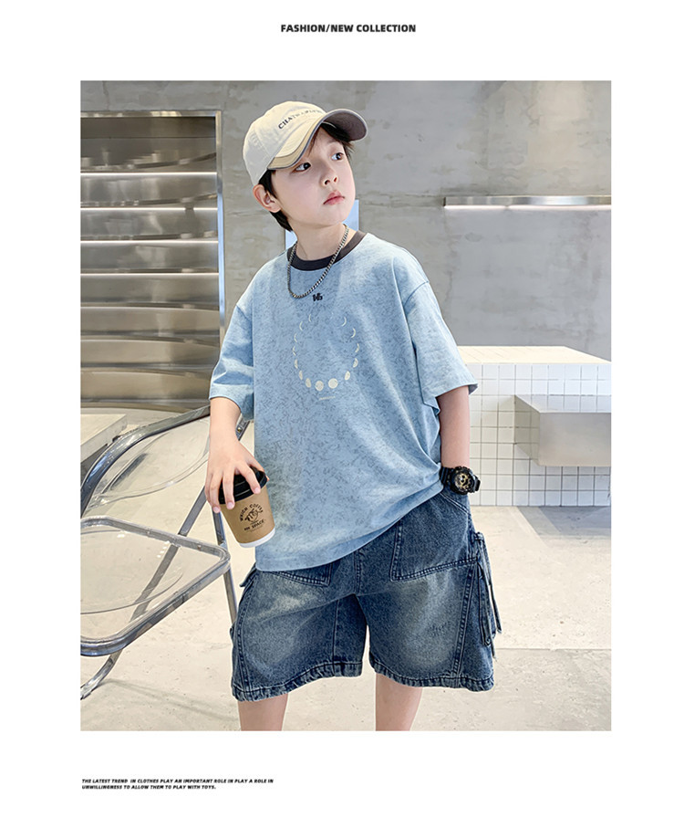 아동 의류 소년 여름 반팔 티셔츠 2025 새로운 스타일 중대형 어린이 여름 소년 여름 잘 생긴 탑 t 도매스토어 가기
