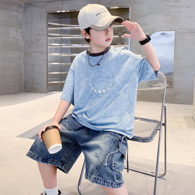 아동 의류 소년 여름 반팔 티셔츠 2025 새로운 스타일 중대형 어린이 여름 소년 여름 잘 생긴 탑 t 도매