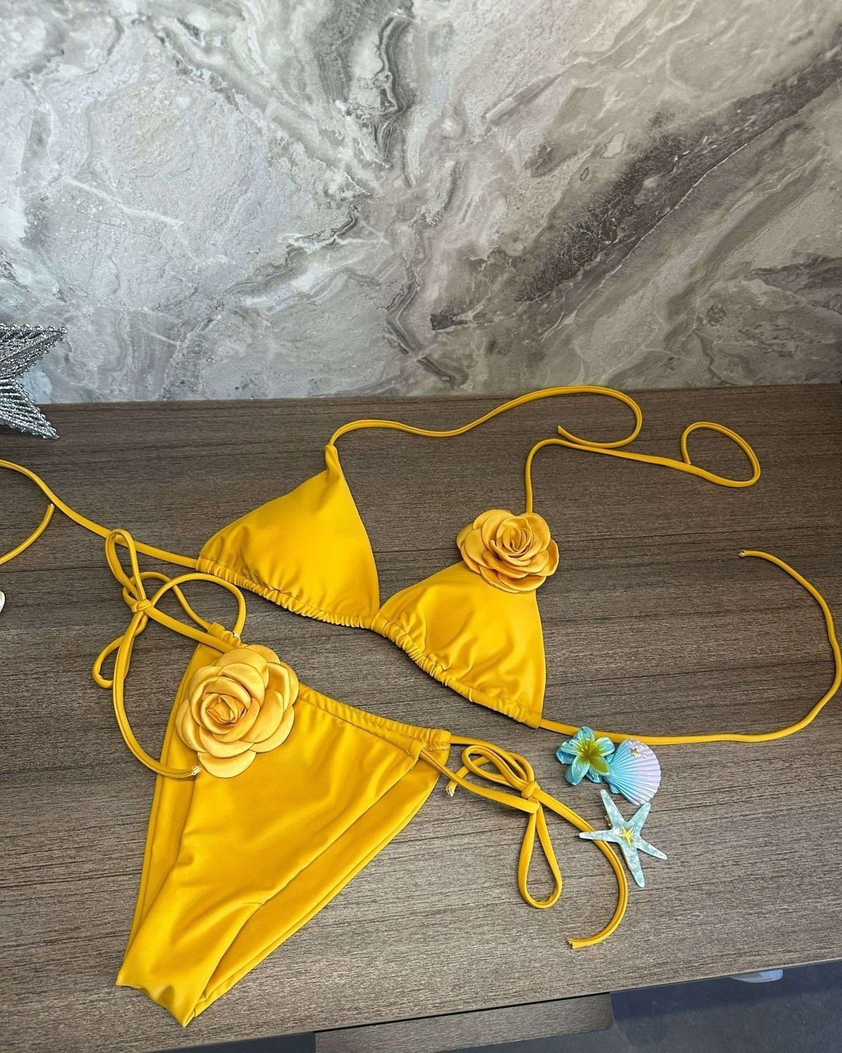 태국 틈새 노란색 꽃 수영복 여성 2025 새로운 휴가 하이 엔드 섹시한 비키니 섬 3 피스 세트