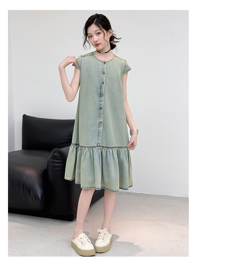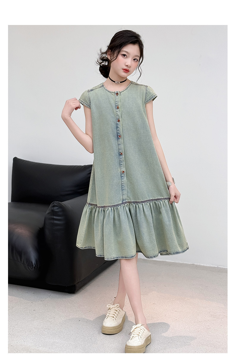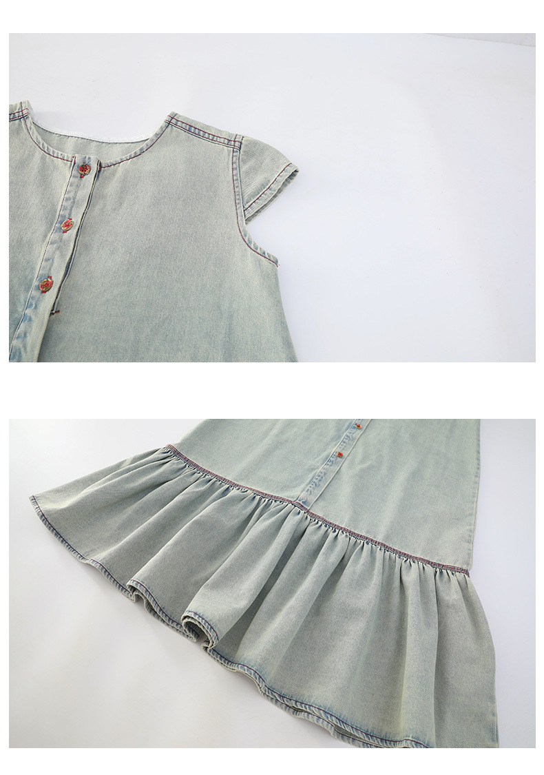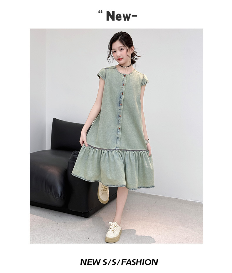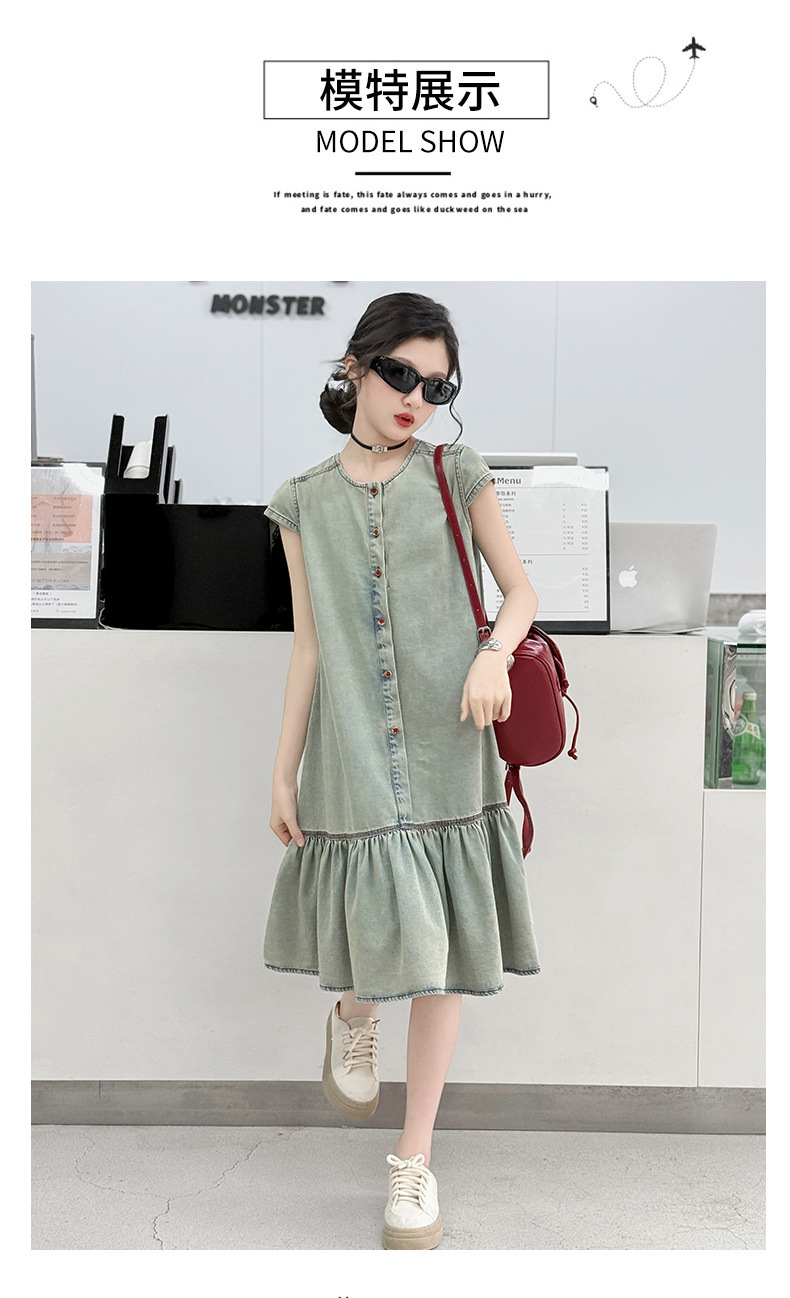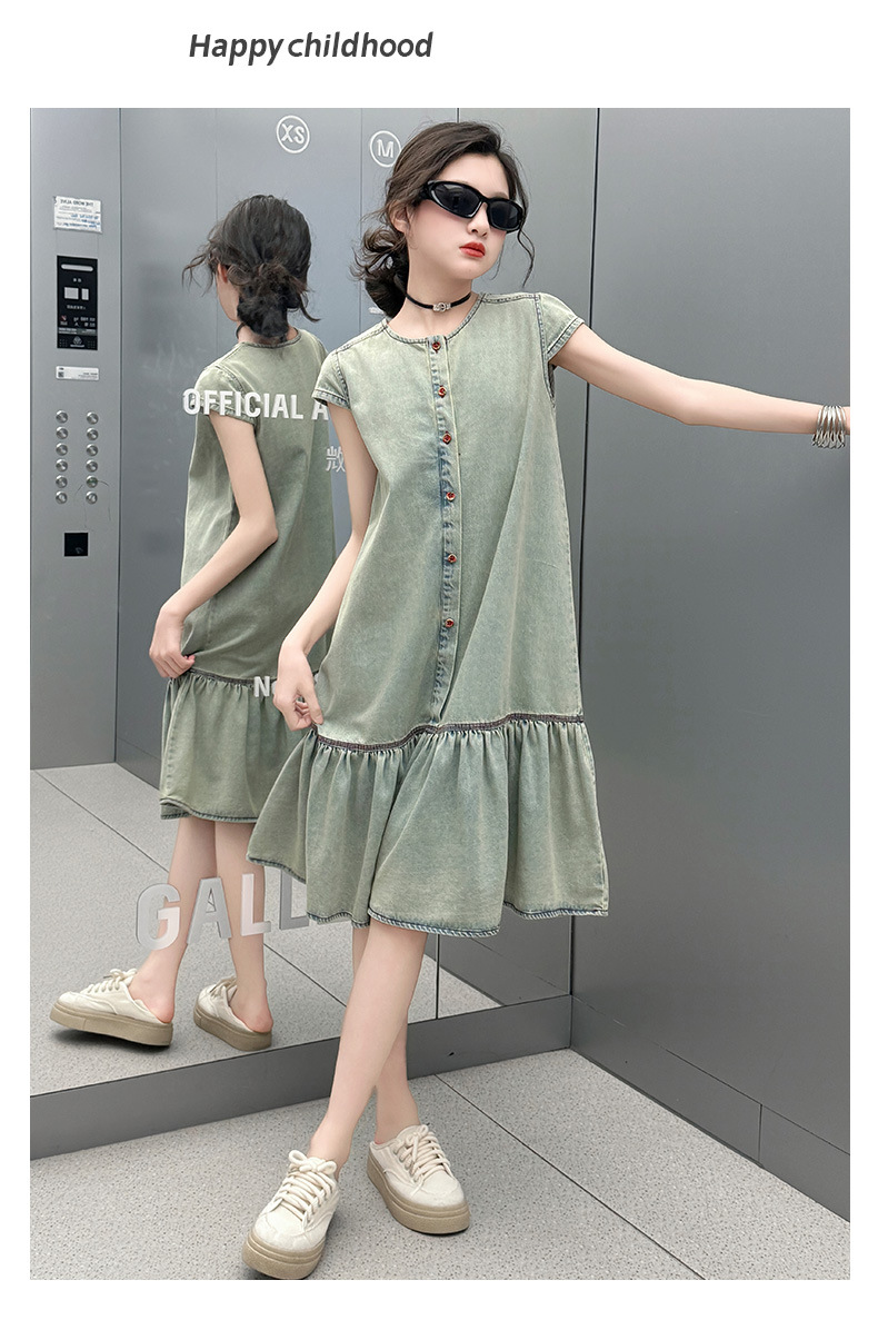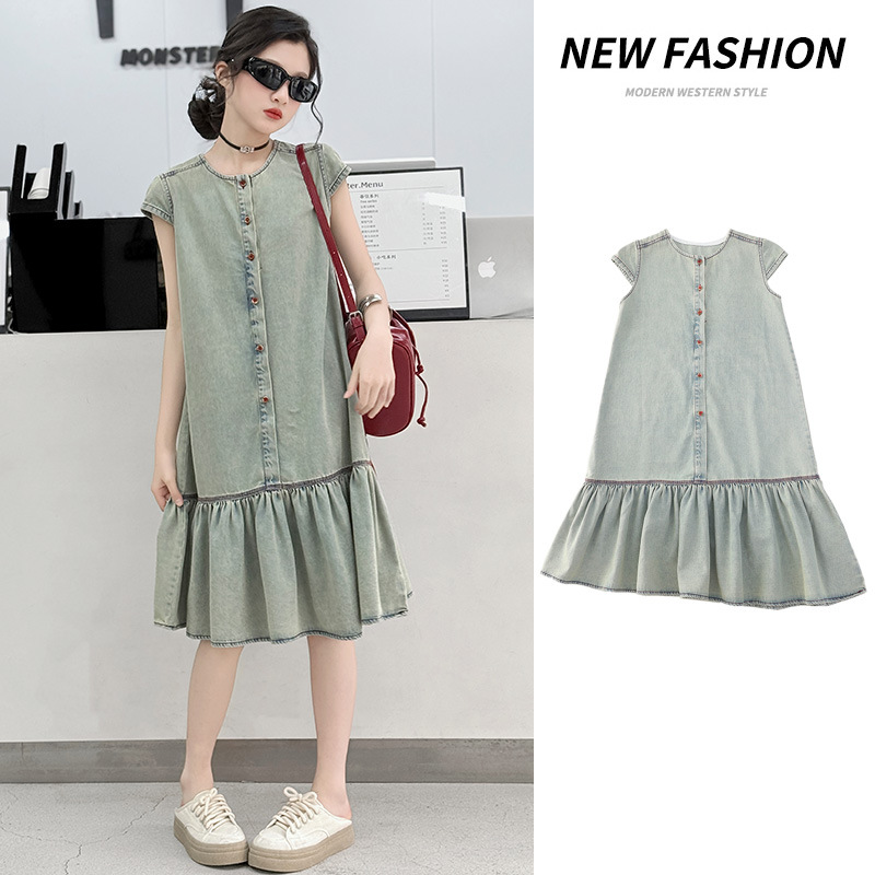 소녀 여름 세련된 세련된 얇은 데님 원피스 소녀 여름 스커트 어린이 캐주얼 공주 스커트스토어 가기