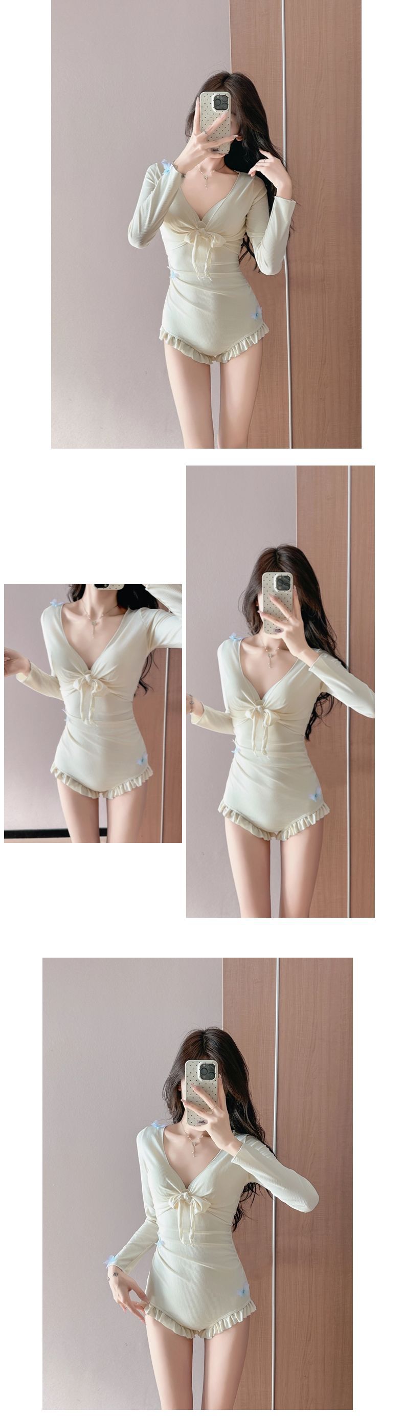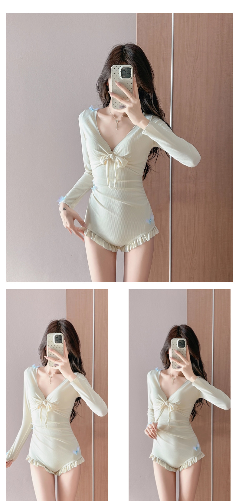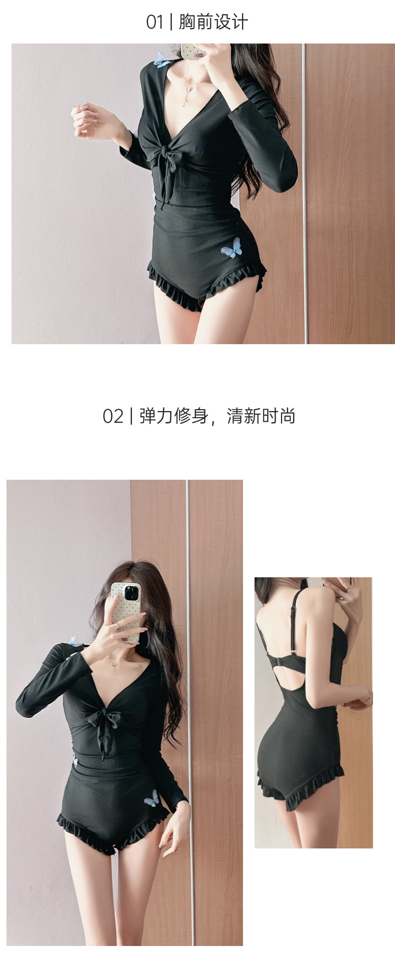 섹시한 검은 수영복 여성의 2025 새로운 육체 커버 슬리밍 긴팔 블라우스 온천 투피스 핫걸 수영복스토어 가기
