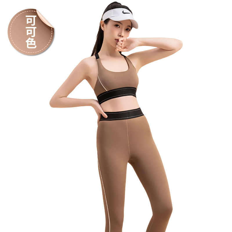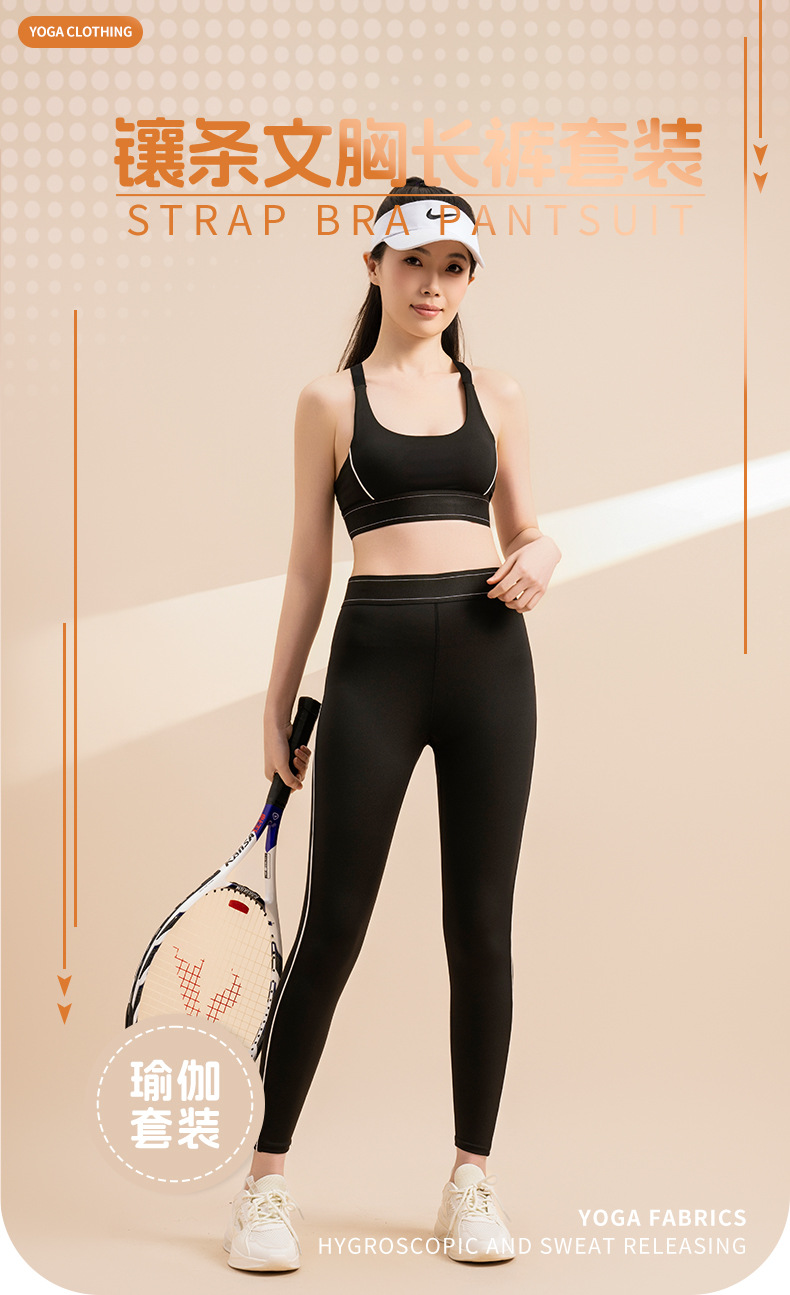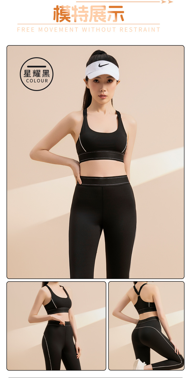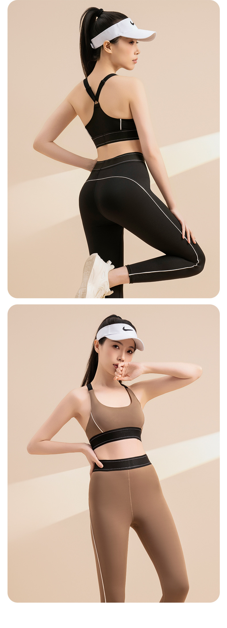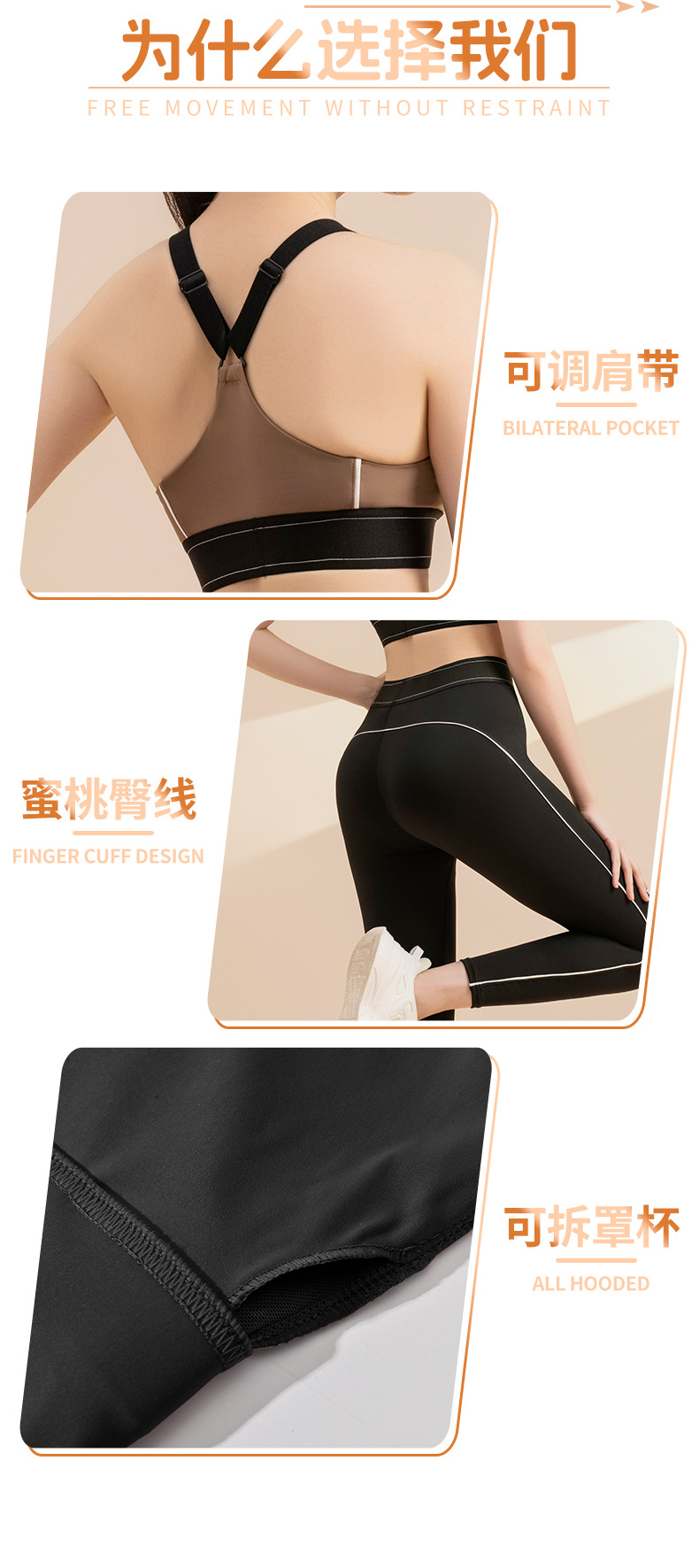 대비 색상 조정 가능한 어깨 끈 스포츠 속옷 고강도 충격 방지 푸시 업 훈련 요가 브라 바지 피트니스 착용 세트