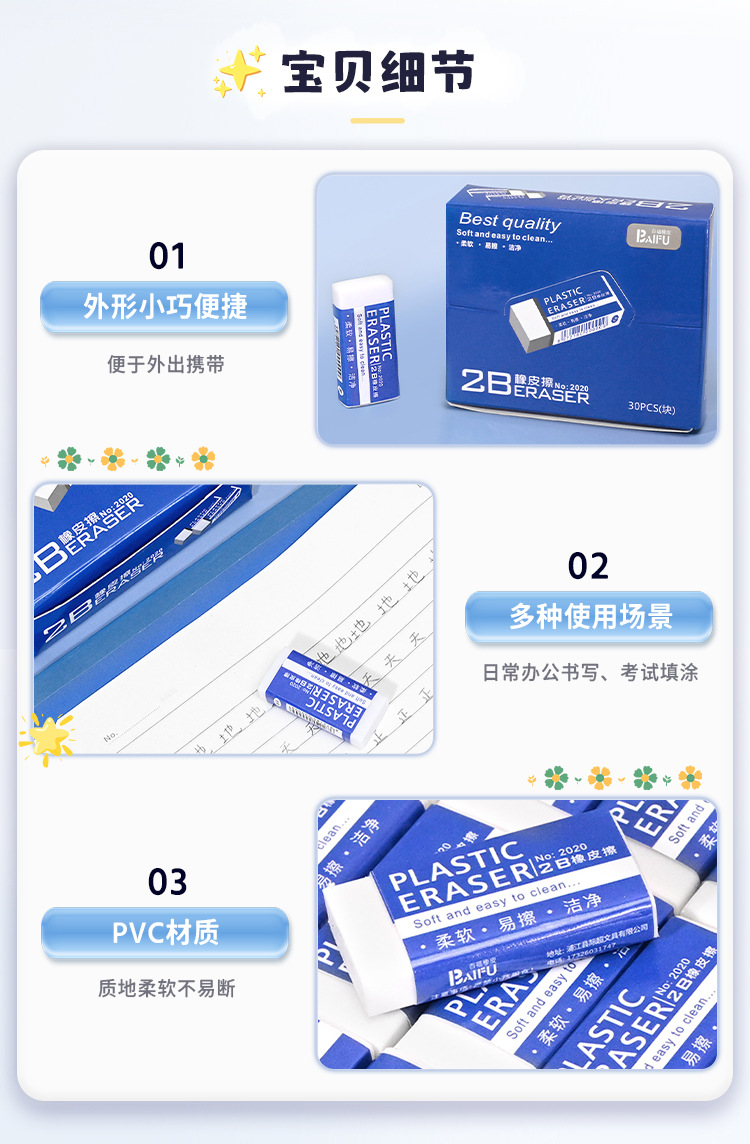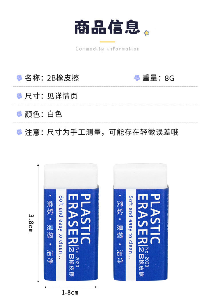 지우개 부스러기 없음 매우 깨끗한 학생 시험 드로잉 특수 2B 연필 지우개 어린이 학습 문구 용품 도매스토어 가기