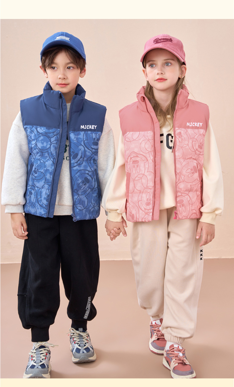 디즈니 어린이 다운 조끼 화이트 오리 다운 어린이 가을, 겨울 의류 소년과 소녀 아기 조끼 두꺼운 조끼스토어 가기