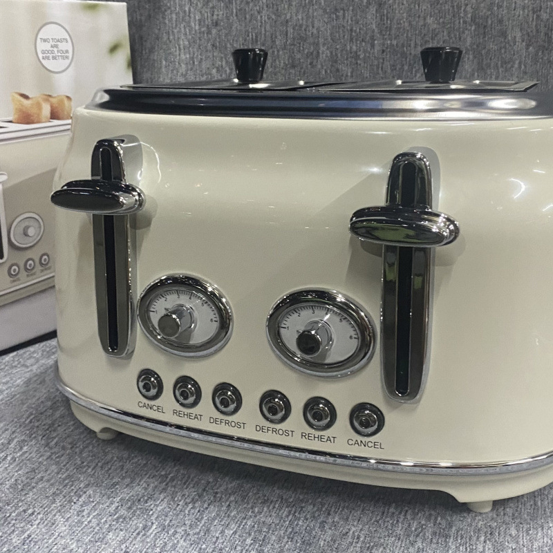 4슬롯 완전 자동 다기능 토스터, 가정용 토스터 아침 식사 기계, 복고풍 토스터 수출