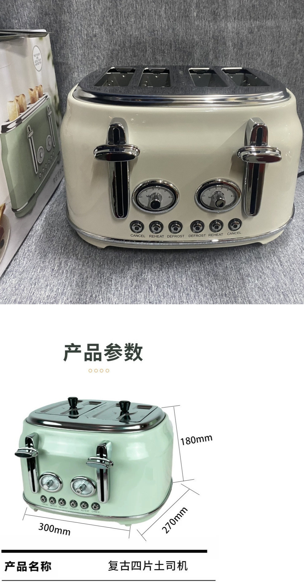 出口四片全自动多功能多士炉吐司机家用烤面包早餐机复古Toaster,产品尺寸看最后一张图