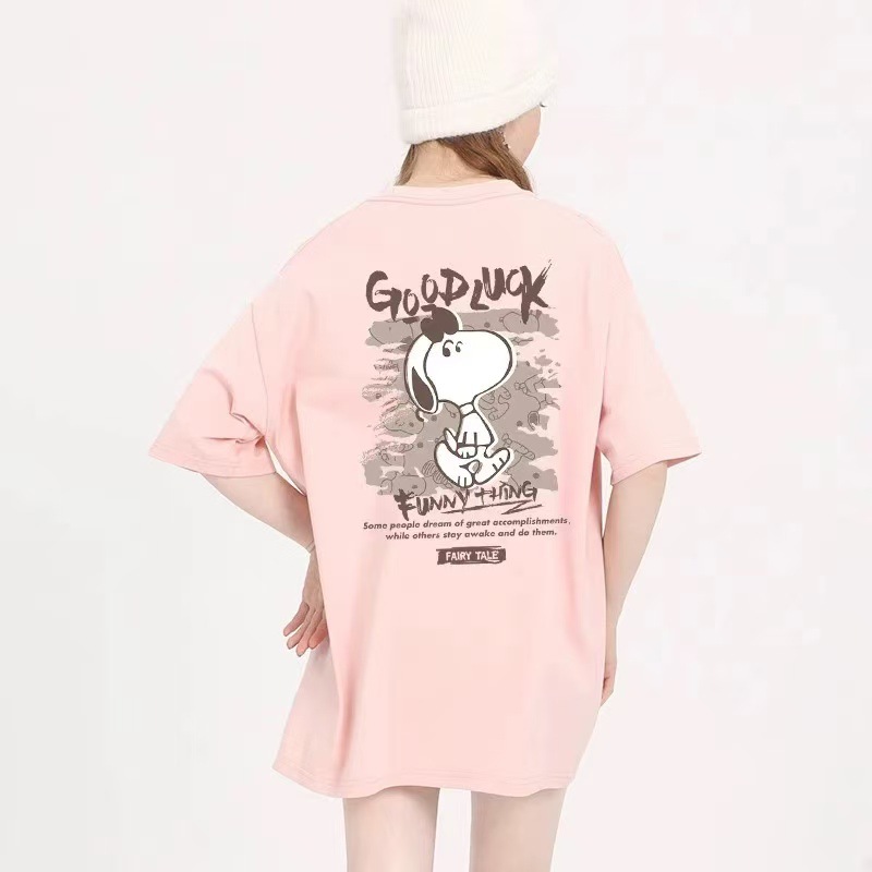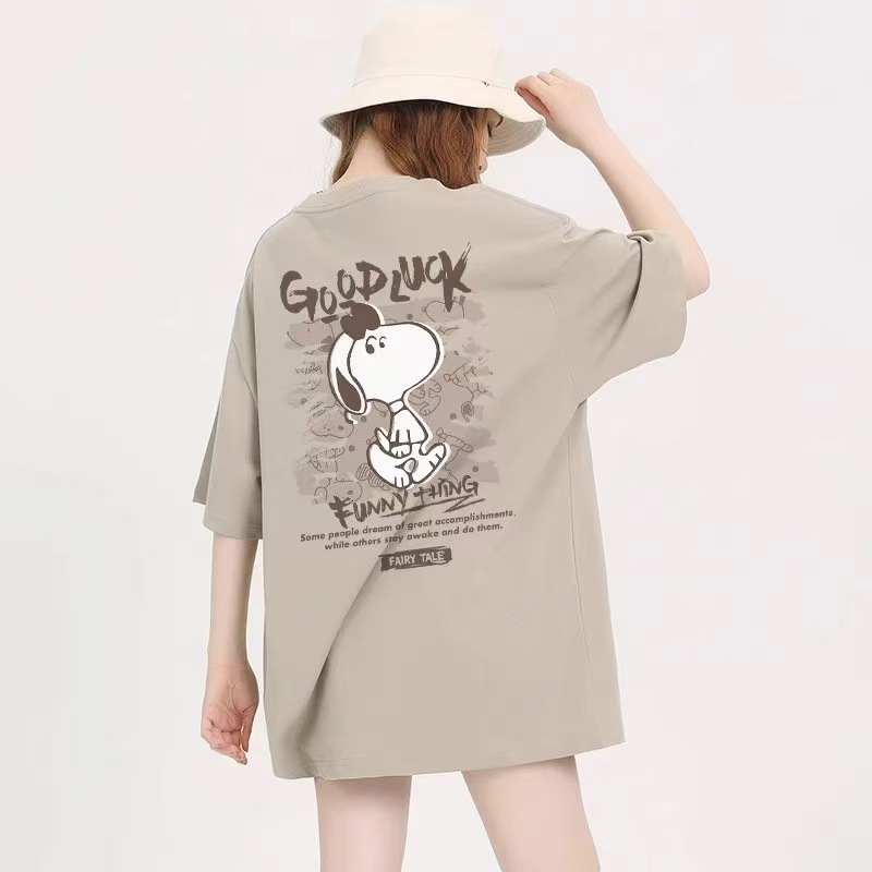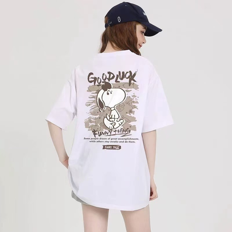 코튼 백 백 칼라 여름 새로운 만화 귀여운 애니메이션 인쇄 느슨한 올매치 캐주얼 반팔 티셔츠 남성과 여성스토어 가기