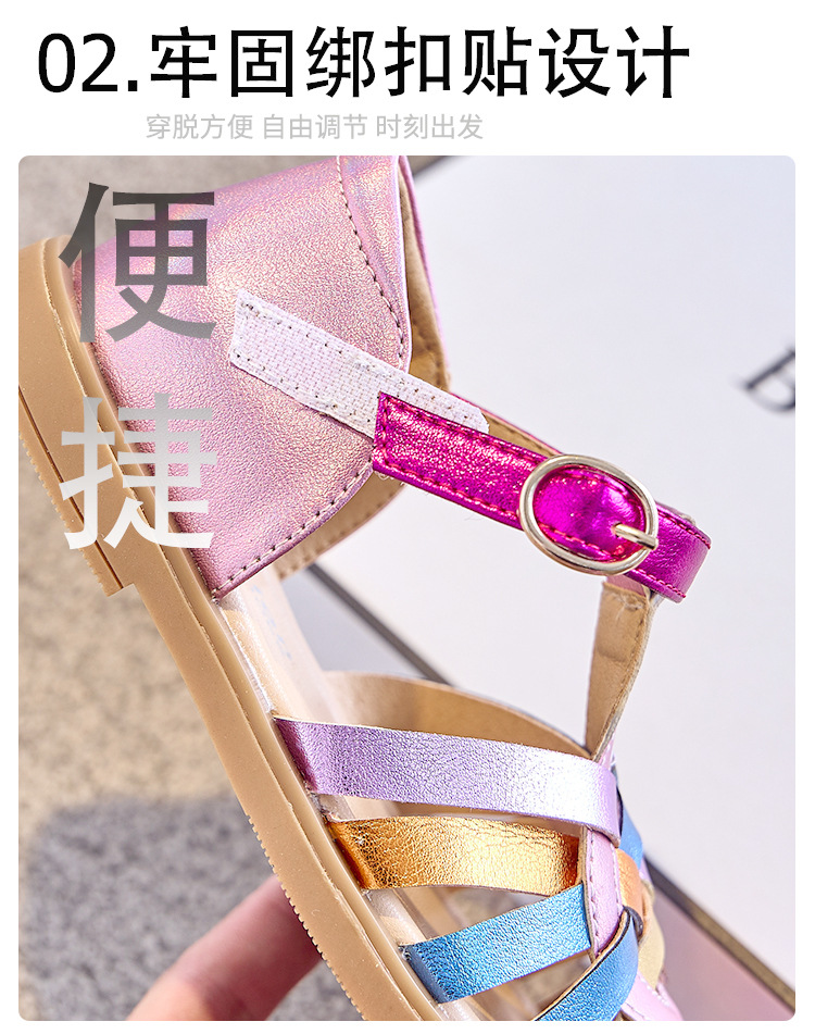 로마 어린이 신발 소녀 샌들 바오 터우 2025 여름 새로운 큰 어린이 운동화 패션 공주 신발 어린이 신발
